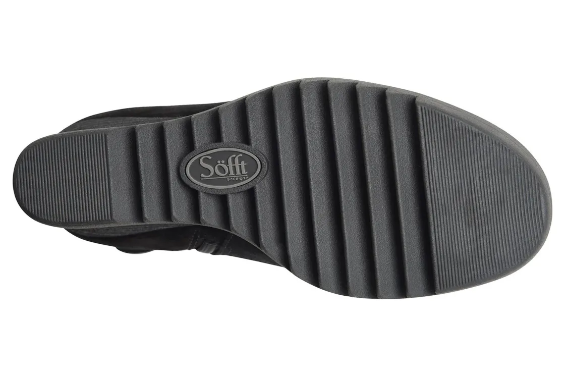 Sofft Utley is a durable and comfy women’s boot. These sturdy cold weather booties have waterproof suede uppers, an inside zipper and non-slip lugged TPR outsole. Other features include a microfiber lining, stretch goring, cushioned footbed and 3 ¼ inch stacked wedge heel height.