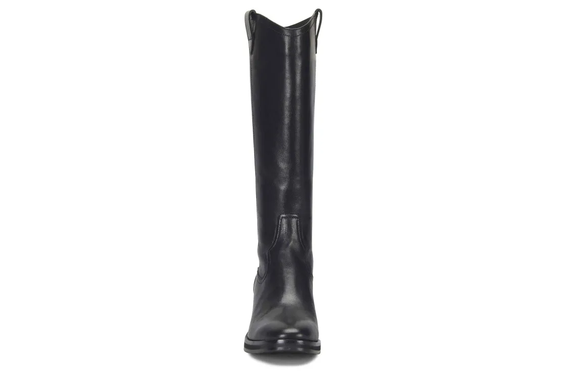 The Sofft Shelby is designed with a stovepipe shaft – a straighter, wider column shape than typical riding boots, so it’s easy to wear with wider leg pants. The gorgeous scalloped topline and stitching give it a western-inspired touch.