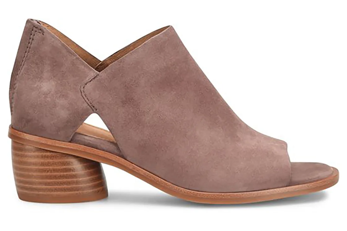 Sofft Carleigh is a trendy and comfortable shootie. These chic shoes have a leather upper with a peep toe and side cutouts, as well as a flexible TPR outsole. A back zipper, cushioned footbed and 2-inch rounded wrapped heel complete this elegant silhouette.
