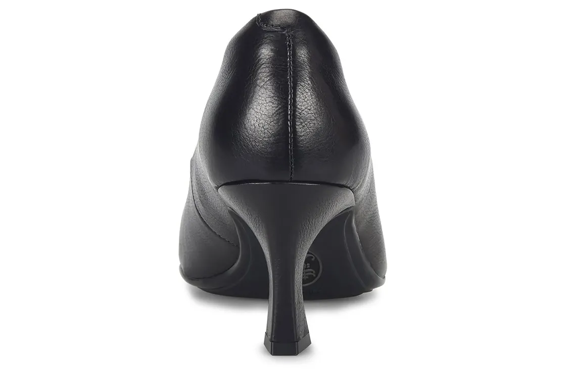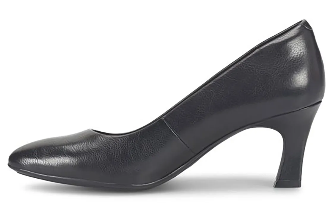 The Sofft Samy features a sculpted kitten heel with a soft pointed toe. These stylish pumps come in Black, Espresso, and Sky Navy.