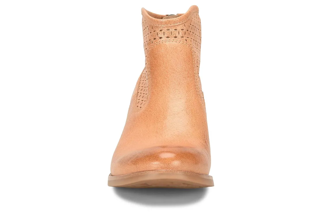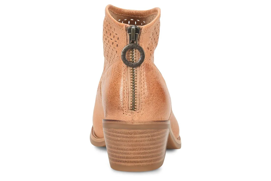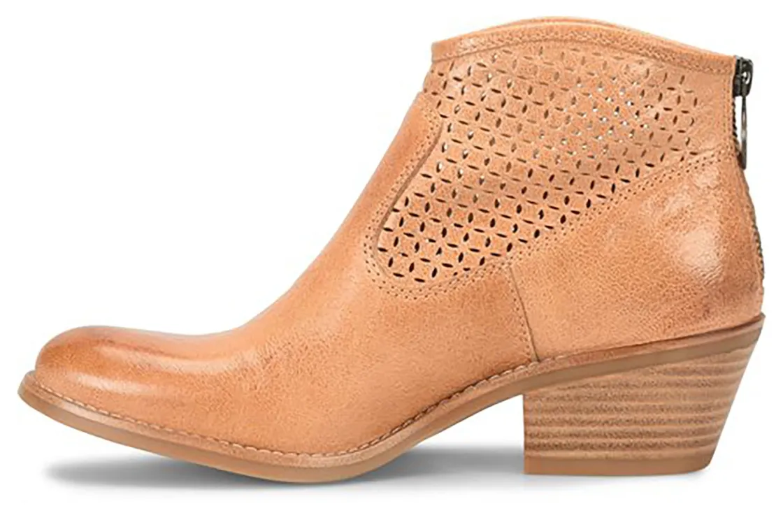 Western styled AISLEY bootie with super soft unlined shaft and authentic metal zipper is detailed in go-to Italian leathers and suedes, rustic Cancun Soft plus ultra-soft Italian nubuck and leathers as new novelty for the season.Subtle almond toe bootie with low stacked heel for all day comfort.