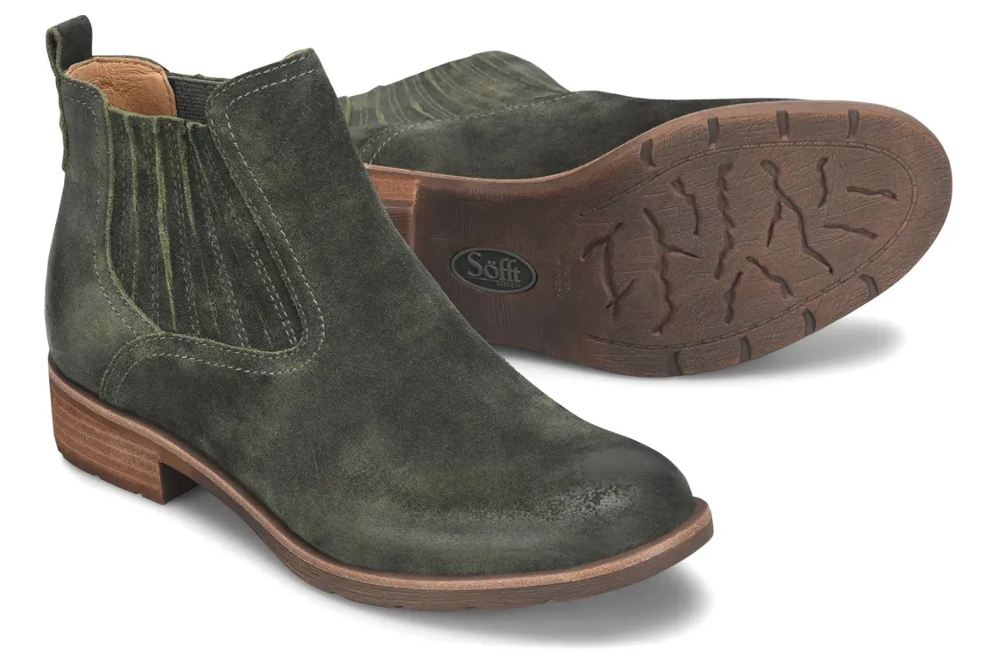 Sofft Bellis III is a comfortable and weather-friendly Chelsea boot. Features include waterproof leather and suede uppers, cushioned footbed and TPR outsole. A microfiber lining, seam-sealed construction, stretch goring and 1 ½ inch stacked heel height elevates these reliable boots.