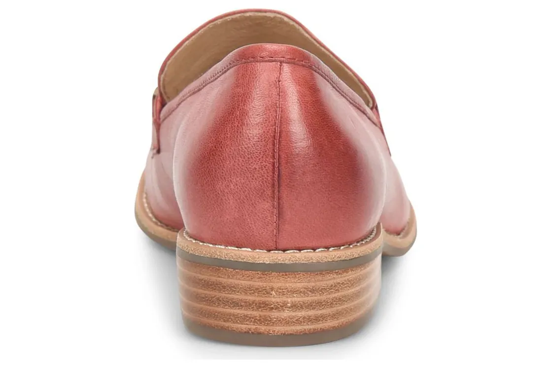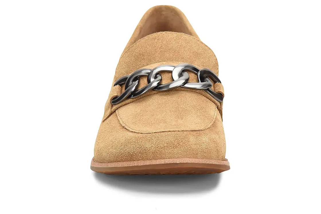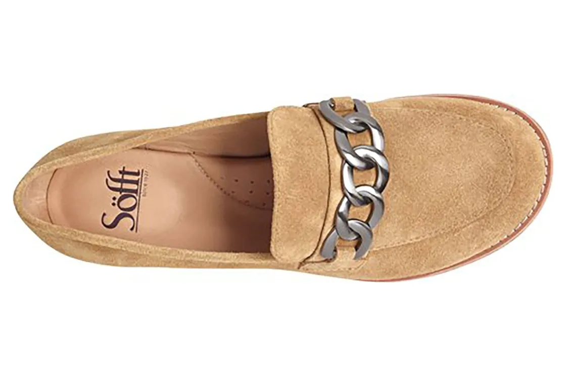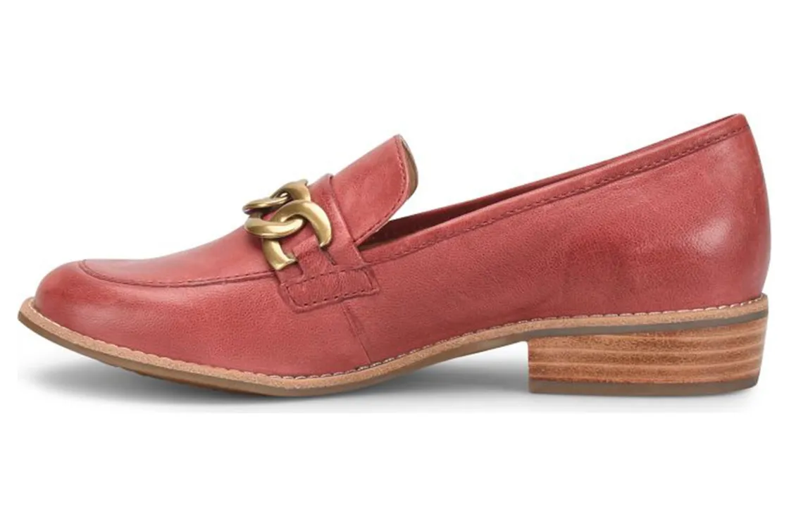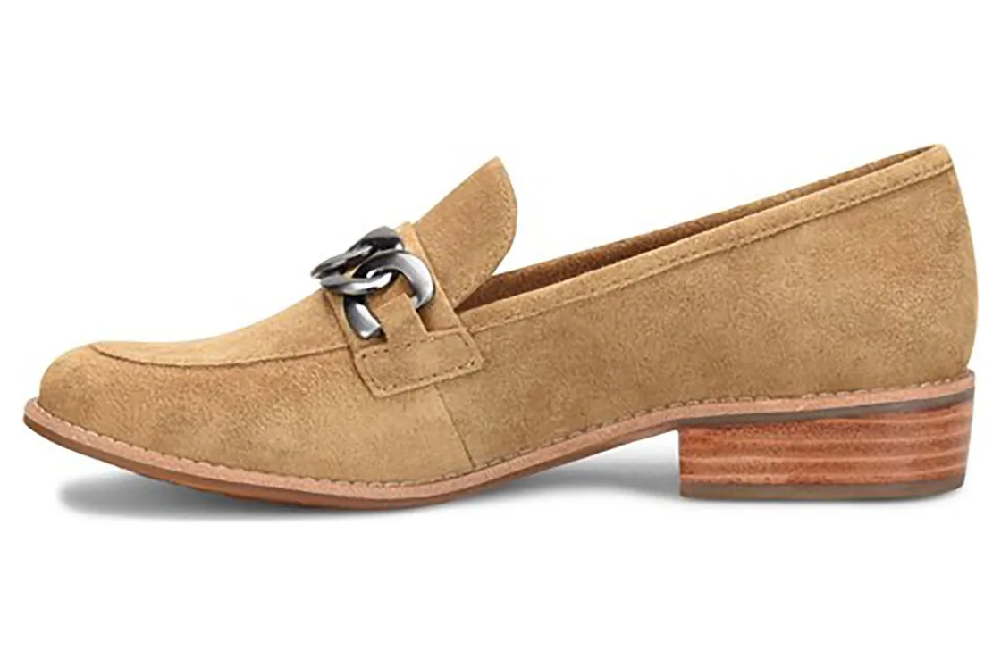 Sofft Nevara is a trendy and comfortable loafer. Smooth leather uppers support feet, chain link ornament adds elegance and cushioned footbed provides comfort. A lightweight and flexible TPR outsole and leather stacked 1 ¼ inch heel completes these loafers.