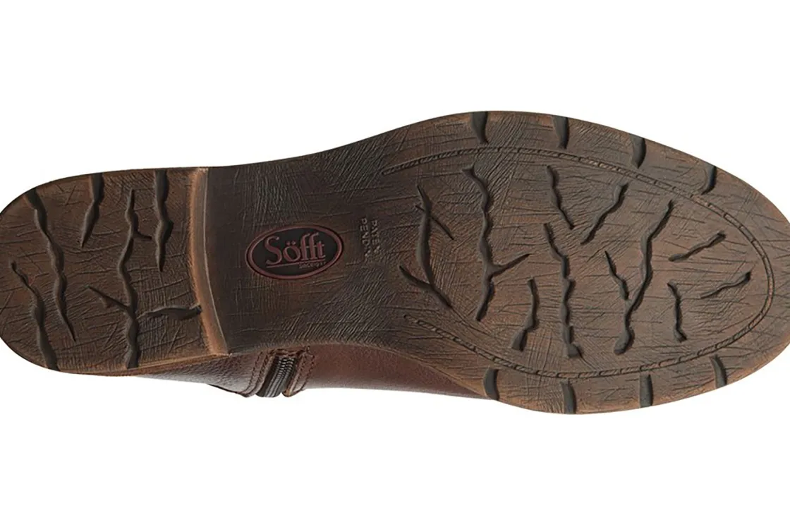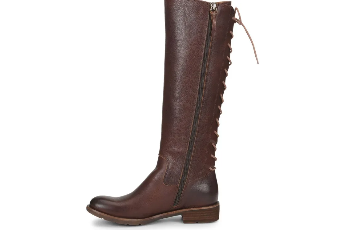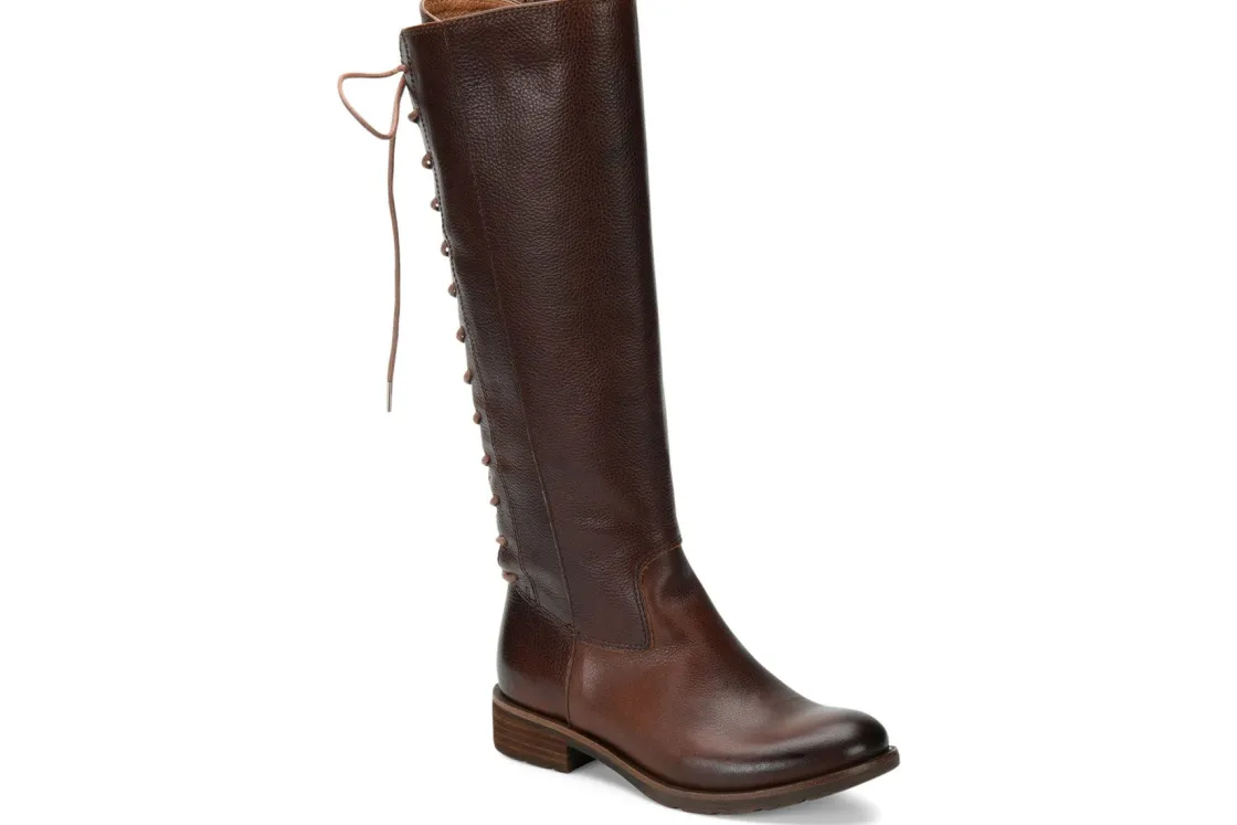 The women’s Sofft Sharnell II boot will be the perfect addition to your cold weather wardrobe. The unique lace up closure at the rear of the shaft provides a fully adjustable fit that accommodates a narrow and wider calf. A side zipper provides easy entry. The leather-covered, cushioned footbed delivers comfort in every step, while the flexible rubber outsole provides superior traction. Packed with unrivaled comfort, the Sharnell II will be a seasonal staple!