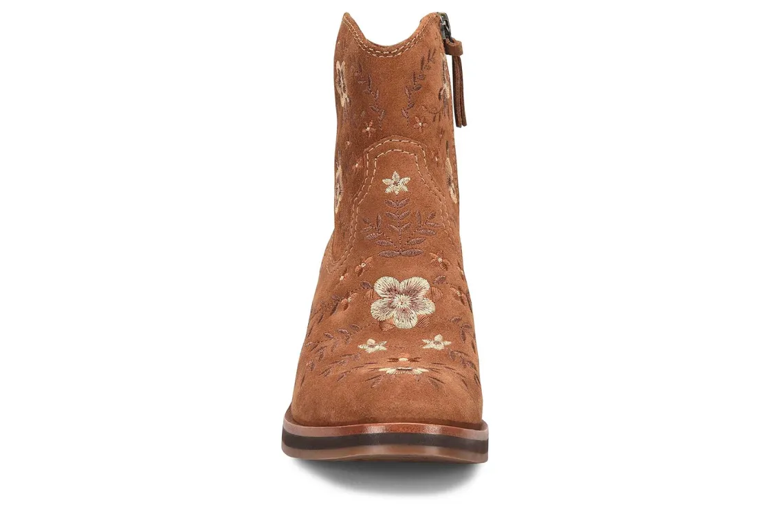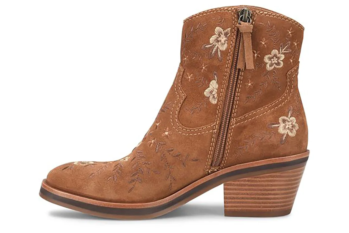 A new take on a classic western silhouette makes a statement with bold EVA striped outsole combined with a casual snip toe and low undercut heel. Artisanal floral embroidery pops on western-inspired Sofft Sophie boot, detailed in premium Italian leathers and suede.
