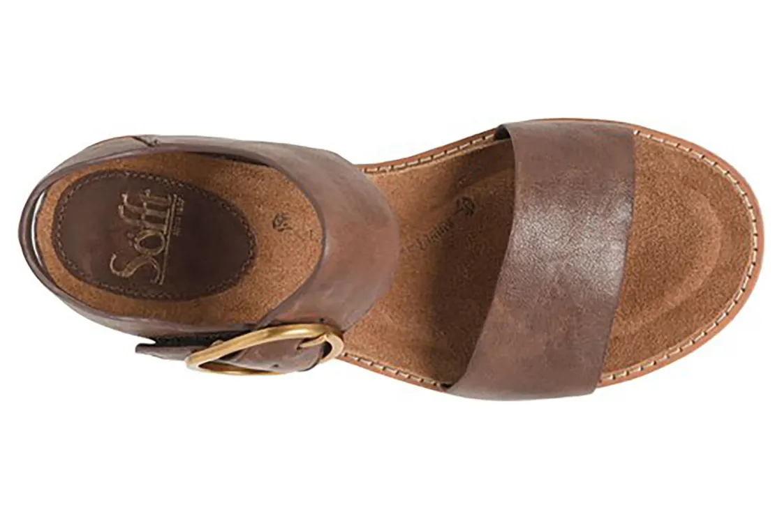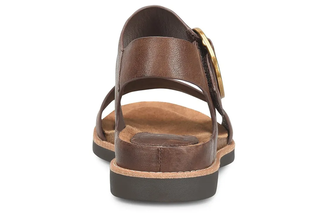 Sofft Bali is a comfortable and stylish walking sandal. These fashionable shoes have cushioned cork footbeds, adjustable hook and loop straps and an oval statement buckle.