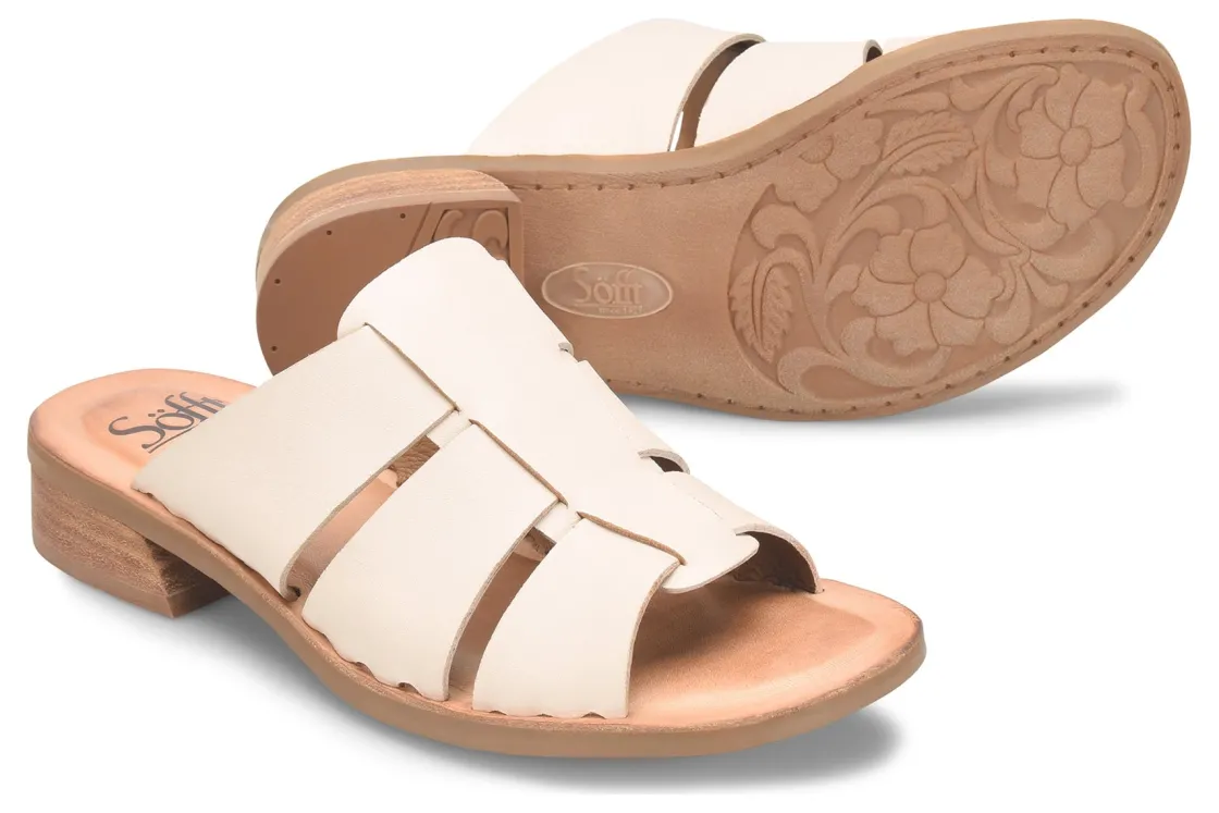 Sofft Almeda is an updated fisherman sandal built for comfort. These warm weather shoes have full-grain or distressed leather uppers and a sturdy TPR outsole. A leather-lined footbed with raised foam and a 1 ¼ inch stacked heel elevates these chic summer sandals.