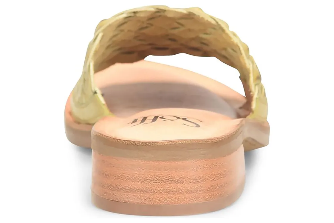 Sofft Ardee is a chic and supportive slide sandal. Features of these woven sandals include leather uppers, raised foam footbed and 1 ¼ inch stacked heel. A lightweight and flexible TPR outsole provides traction, while an open round toe is comfortable and breathable.