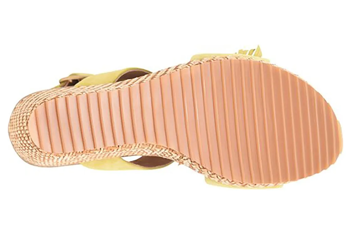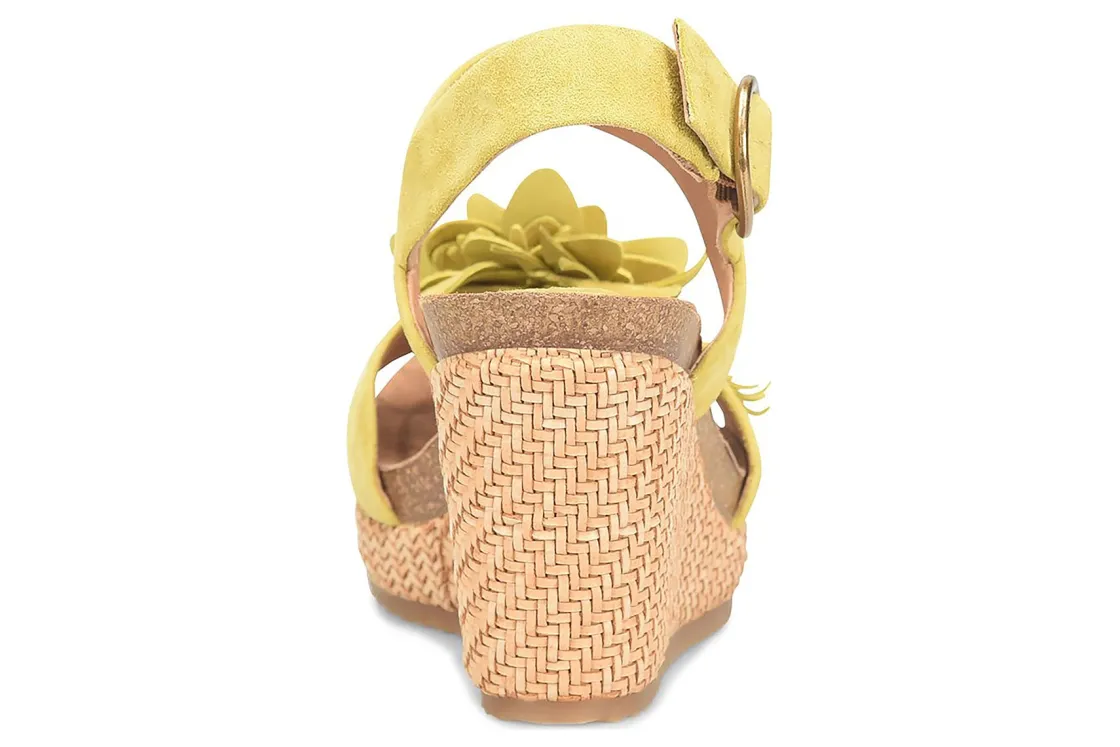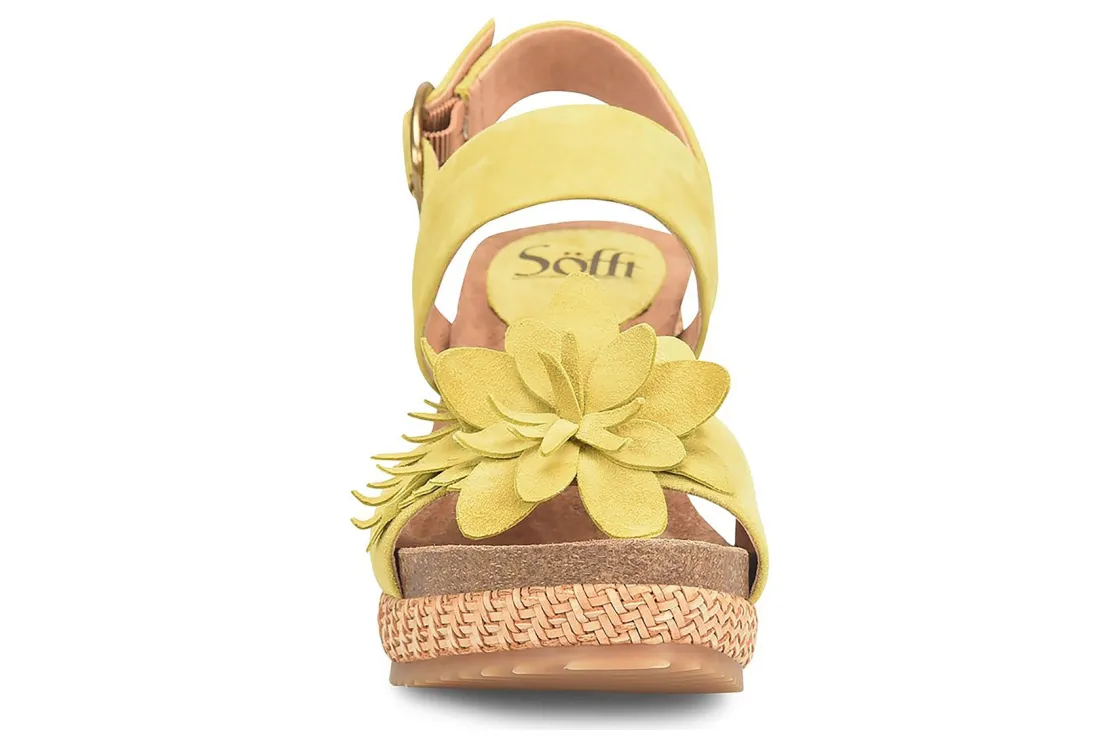 Sofft Cali is a chic sandal with tropical flair. Features include a suede upper, flower blossom ornament and wrapped basketweave PU wedge with TPR outsole. A cushioned cork footbed, adjustable buckle, leather lining and 3 ½ inch heel height elevates these trendy wedge sandals.