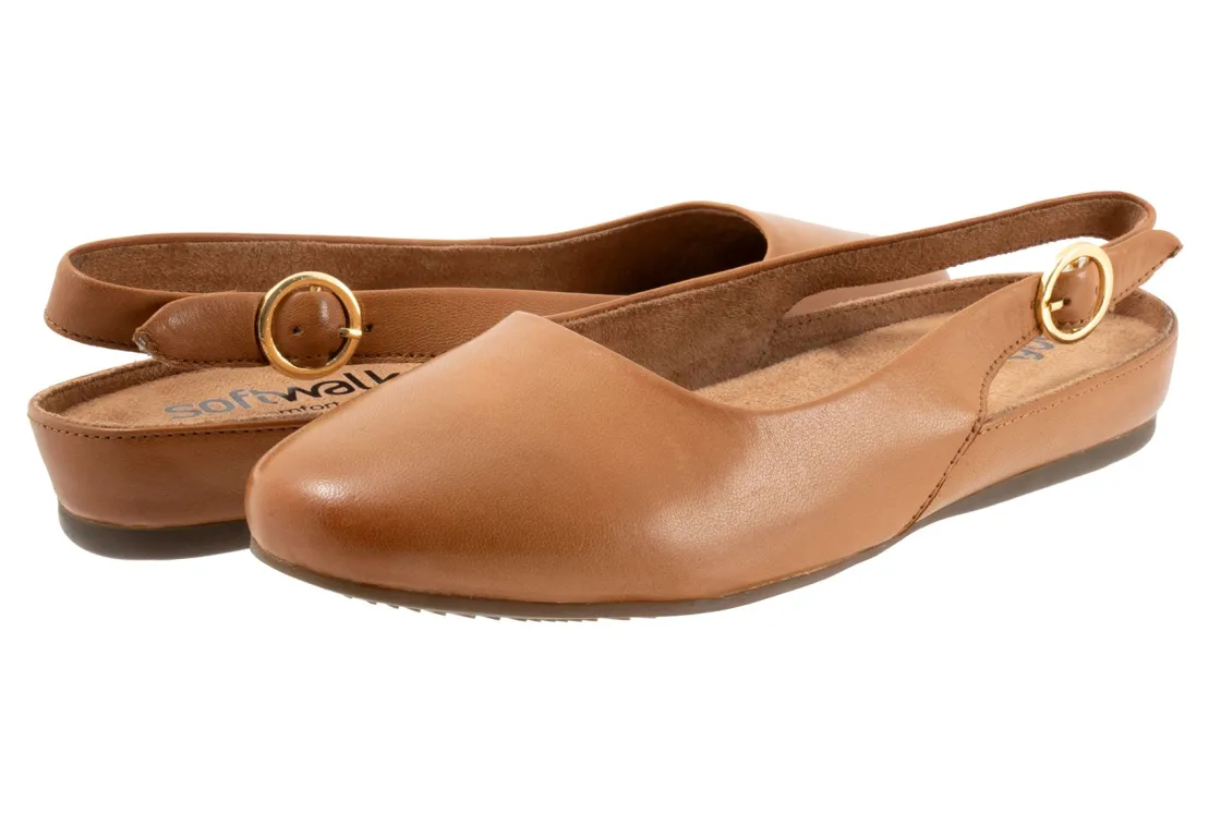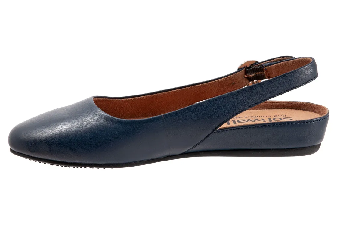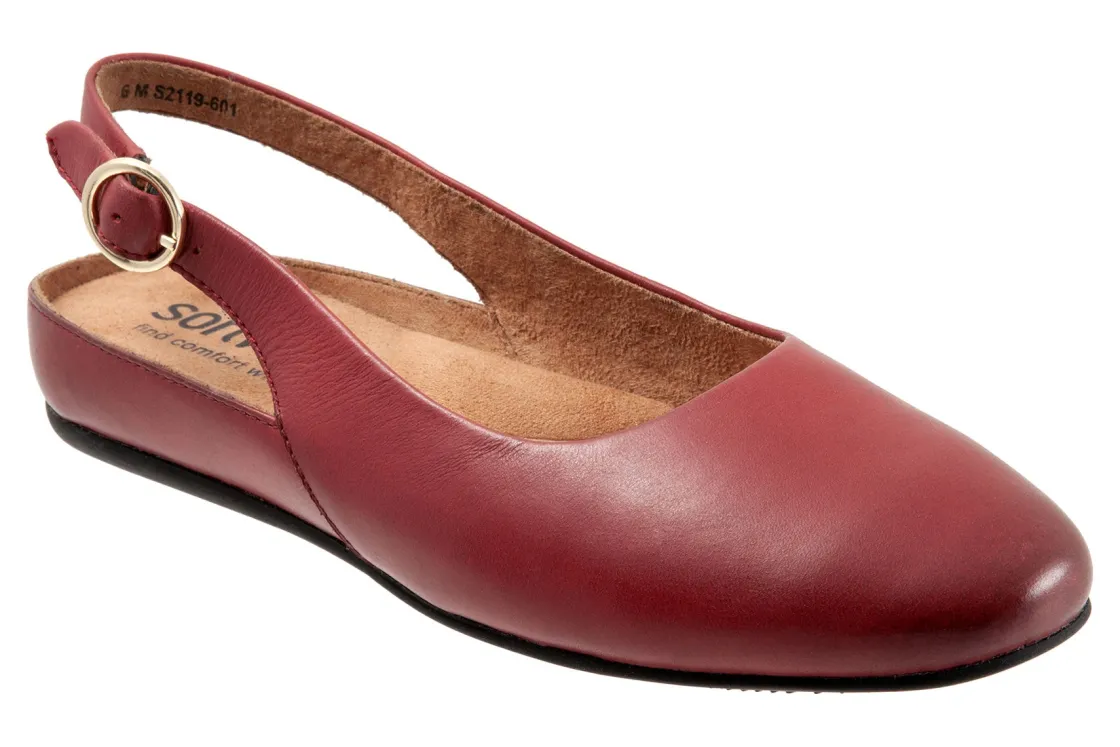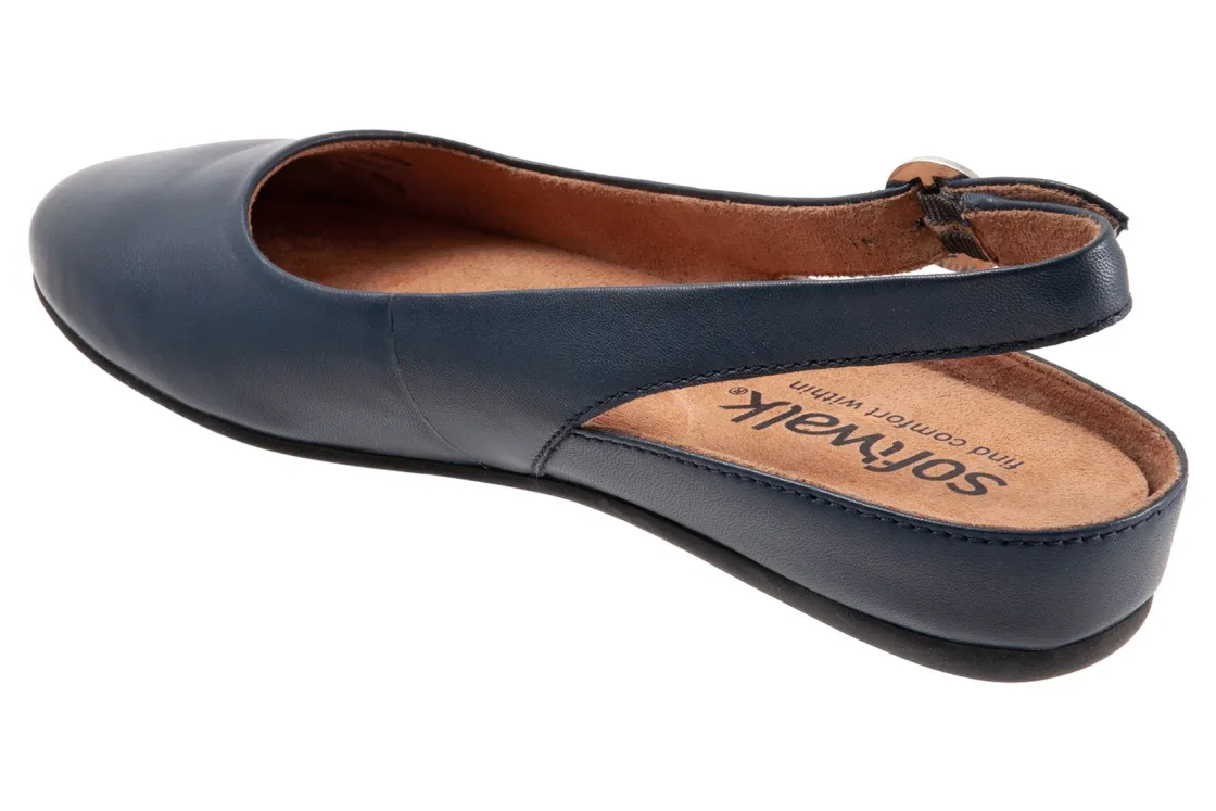Softwalk Sandy is an elegant and comfy slingback ballet flat. These flat shoes have leather uppers, a removable cushioned footbed and flexible rubber outsole. An adjustable buckle backstrap, round toe and opened up styling helps these flats stand out from the crowd.