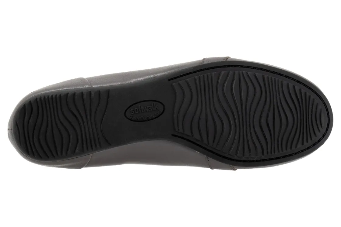 The Serra flat has a cute dual ring strap ornament and all of the comfort you’d expect from a SoftWalk flat. The Serra features a flexible rubber sole, cushioned and removable footbed with arch support, and a soft-lined interior.