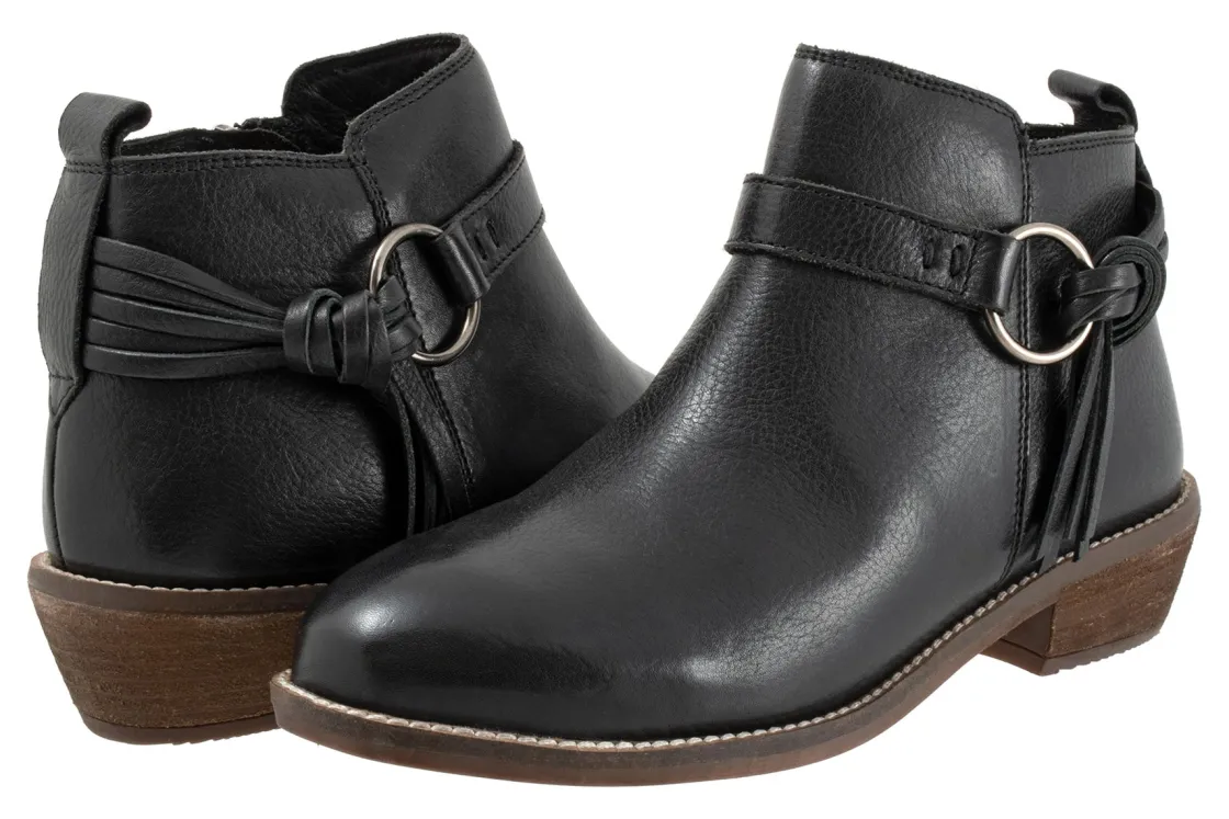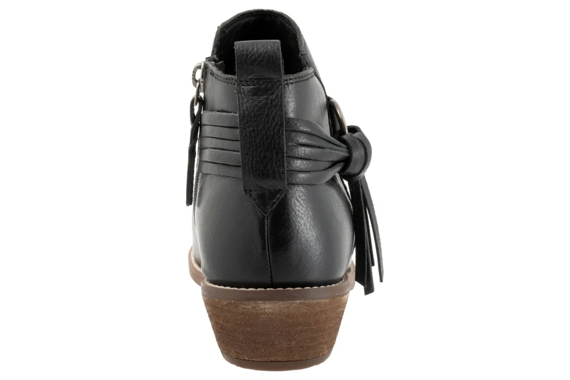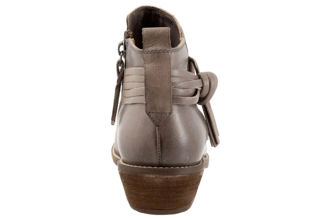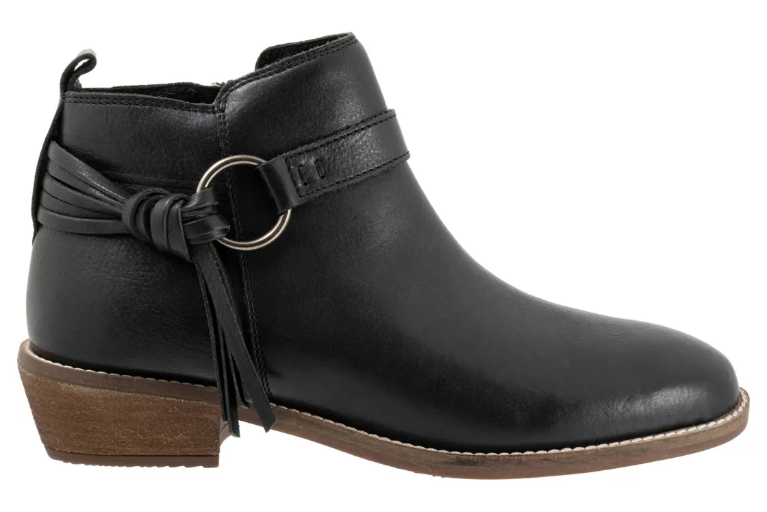 A large metal ring and knotted tassel define the look of the Reade ankle boot. Reade features a side zipper, flexible sole and cushioned removable footbed.