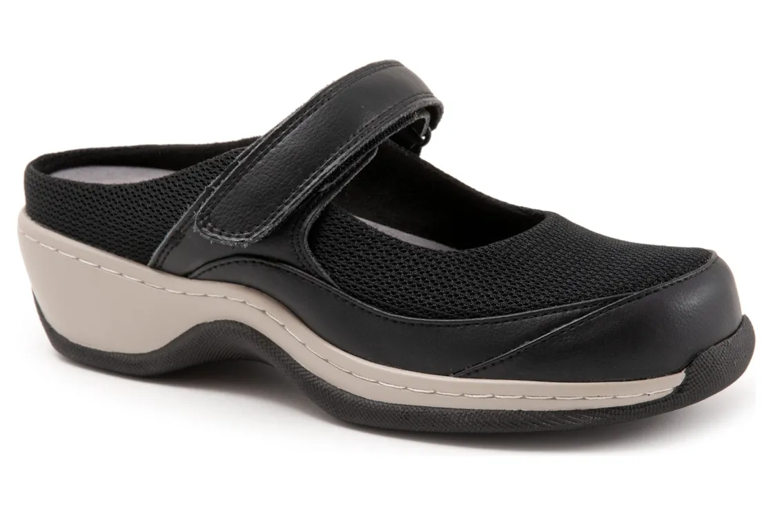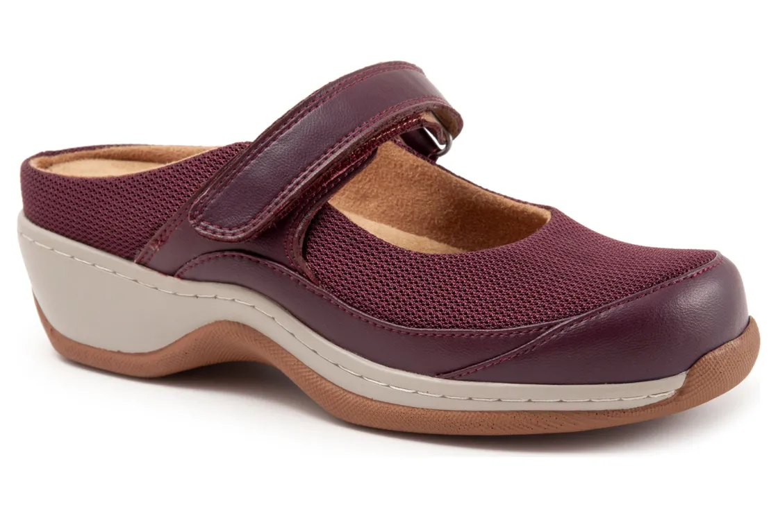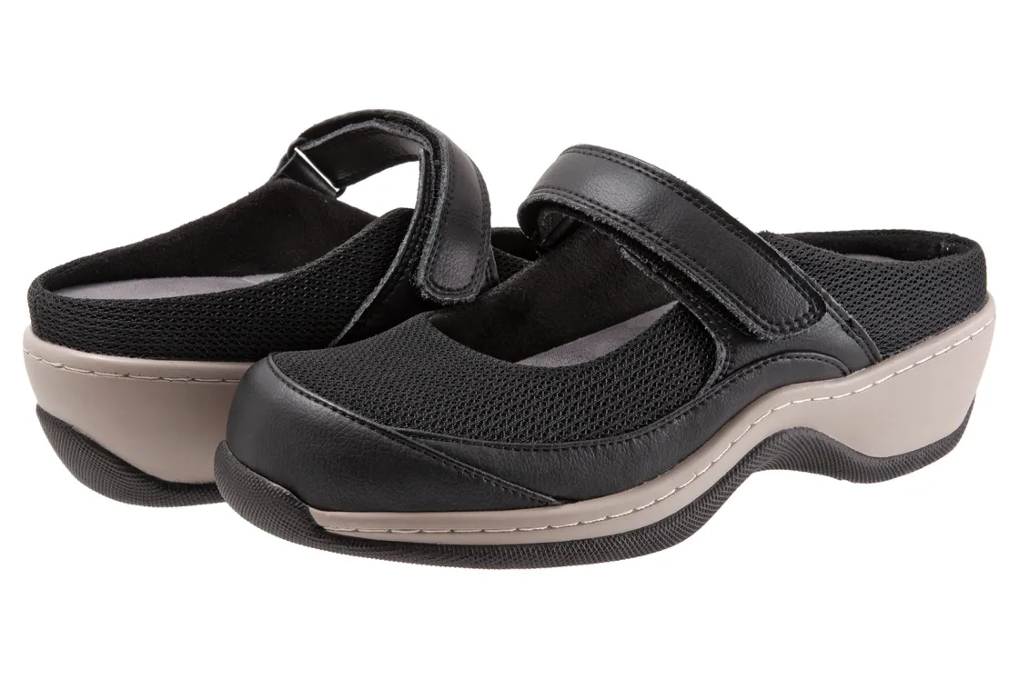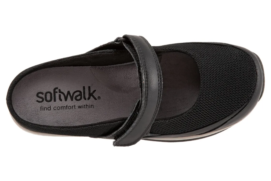 Softwalk Arcadia is an adjustable and versatile Mary Jane clog. A mesh leather upper, removable footbed, cushioned insole and PU outsole makes these clogs. An instep hook and loop strap provides support, while a memory foam cushioned midsole provides added comfort.
