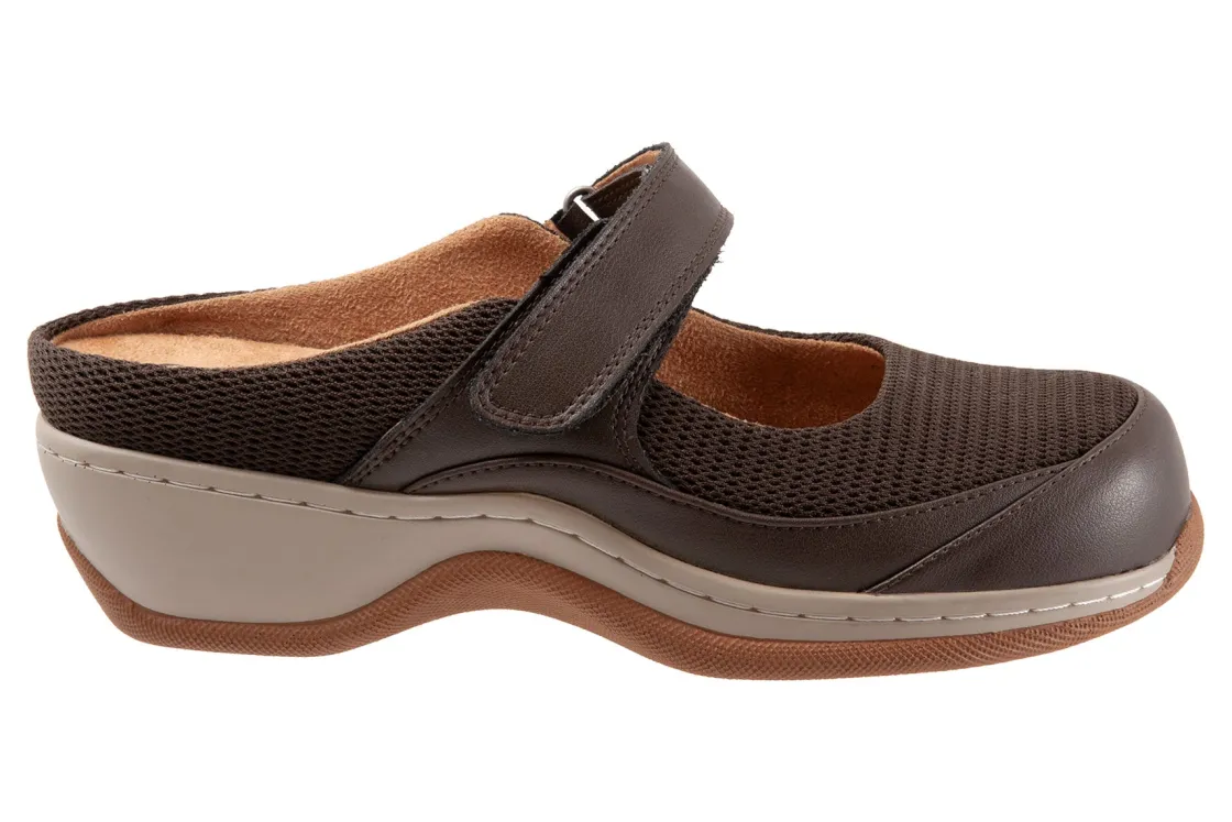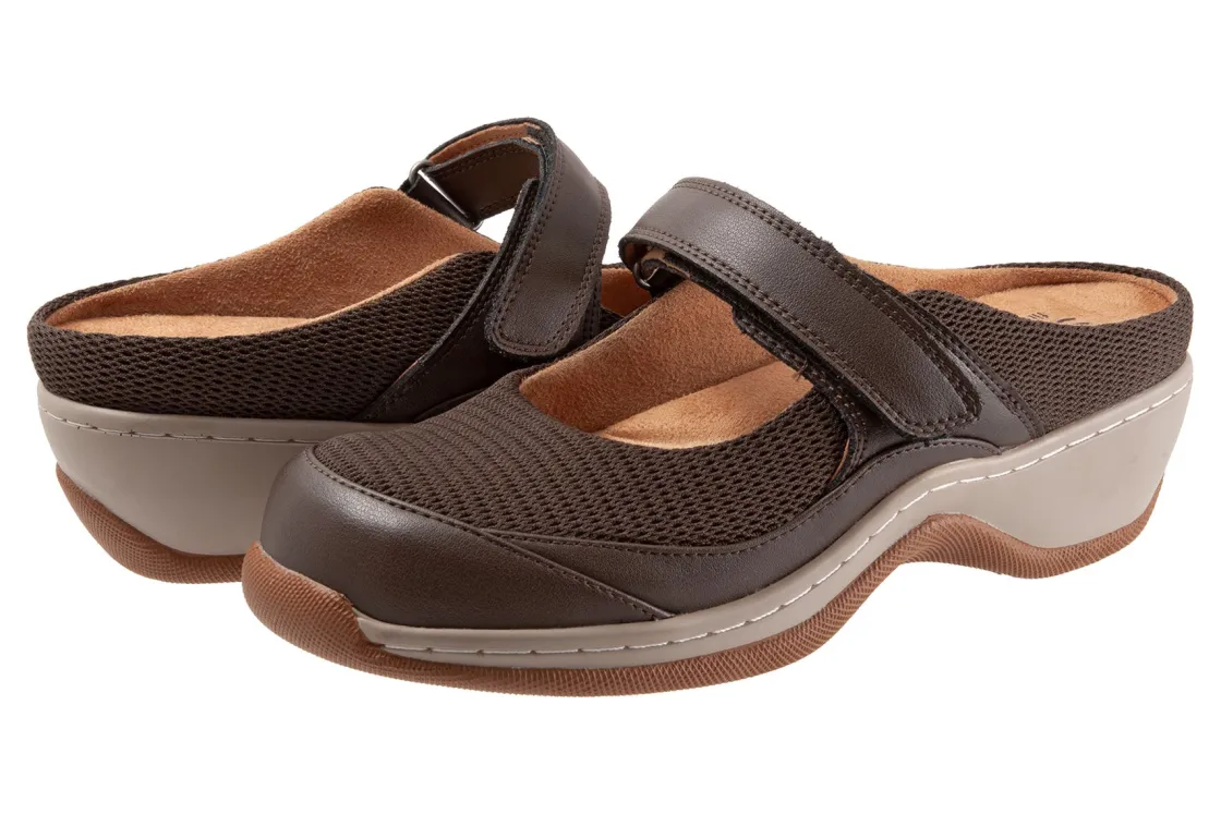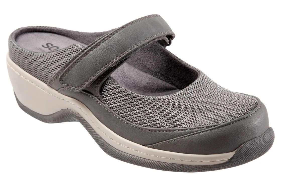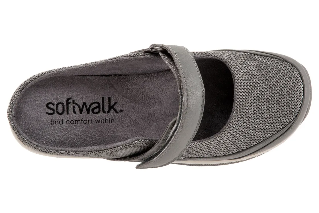 Softwalk Arcadia is an adjustable and versatile Mary Jane clog. A mesh leather upper, removable footbed, cushioned insole and PU outsole makes these clogs. An instep hook and loop strap provides support, while a memory foam cushioned midsole provides added comfort.