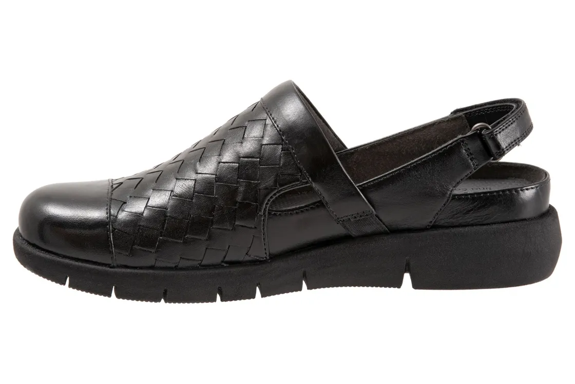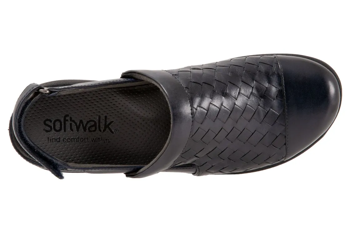 Softwalk Salina Woven II is a detailed slingback shoe. Prominent features include a woven leather upper, removable cushioned footbed and rubberized outsole. An adjustable back strap, padded collar, elastic goring and 1 ¼ inch heel height outlines these stylish shoes.