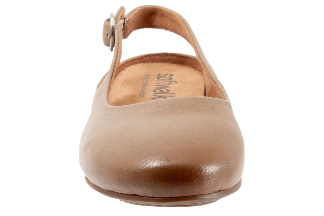 Softwalk Sandy is an elegant and comfy slingback ballet flat. These flat shoes have leather uppers, a removable cushioned footbed and flexible rubber outsole. An adjustable buckle backstrap, round toe and opened up styling helps these flats stand out from the crowd.