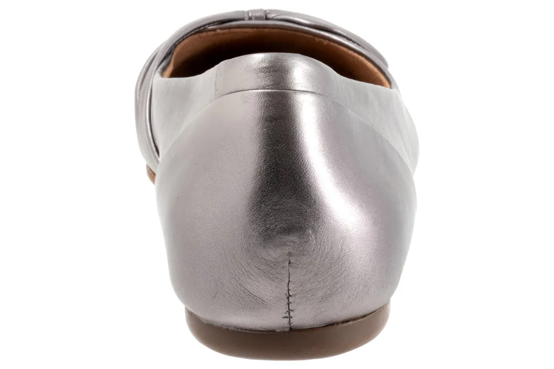 A strap of leather gathers on the toe of the Sofia flat for a unique asymmetric design. A flexible rubber sole and foam-cushioned removable footbed provide unparalleled comfort with casual appeal.