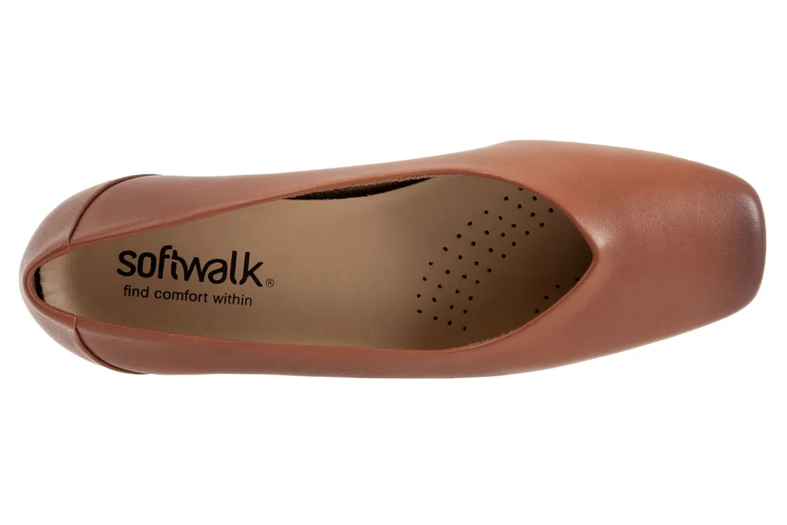 Softwalk Vellore is a modern square toe slip on with a mini-wedge sole and premium leathers. The sole is flexible with a sure-grip and the removable footbed is cushioned for comfort.