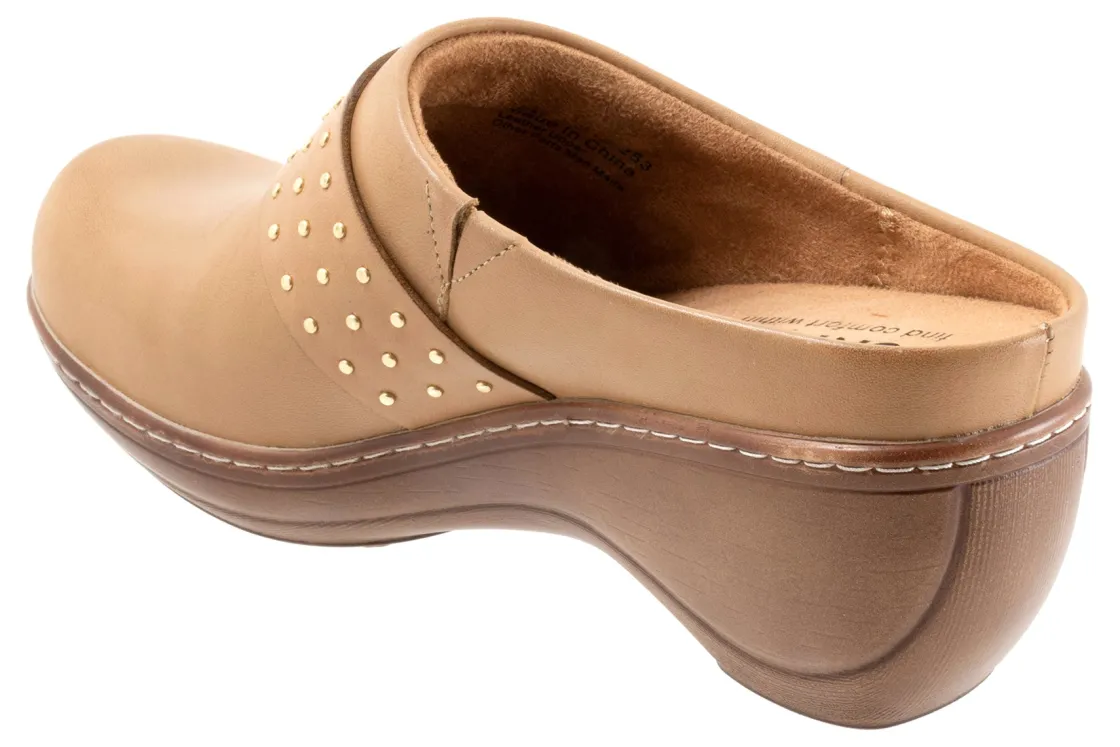 Softwalk Marana is a cute and sophisticated clog. Prominent features include leather uppers, a removable cushioned footbed and a slip-resistant rubber outsole. A microfiber lining, elastic goring, supportive steel or iron shank and 2 ¼ inch heel height elevates these versatile clogs.