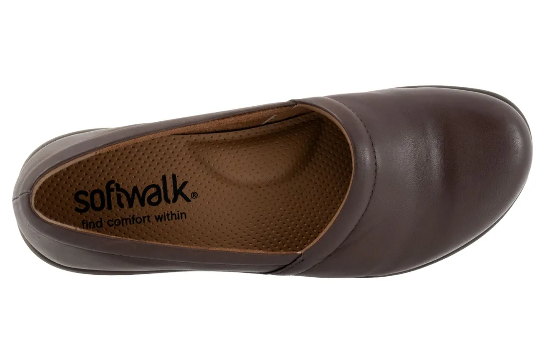Softwalk Adora 2.0 is an update to our popular clog. These durable and sleek shoes have leather uppers, a removable cushioned footbed and rubberized outsole. Leather and microfiber linings, an upgraded flexible sole and 1 ¼ inch heel height will make these clogs a new favorite.