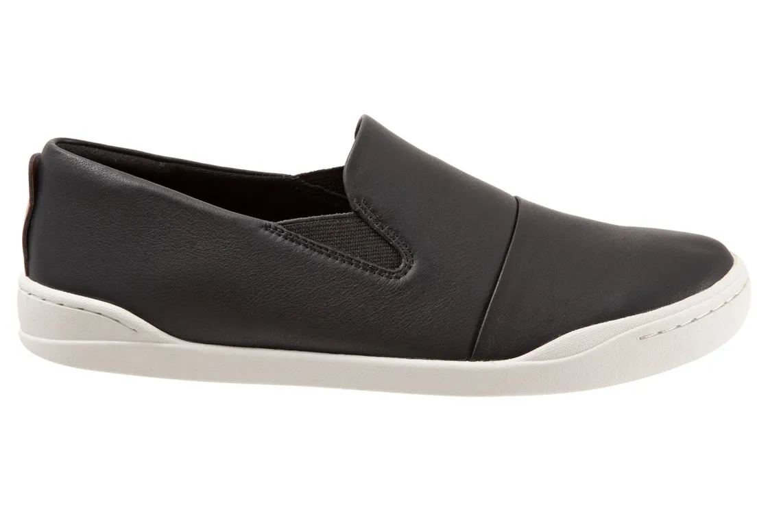 Softwalk Alexandria is a sporty and sleek slip-on sneaker. These shoes have leather uppers, dual elastic goring, cushioned removable footbed and rubber outsole. A microfiber lining, lightweight EVA midsole and built-in arch support helps these durable and comfy sneakers stand out.