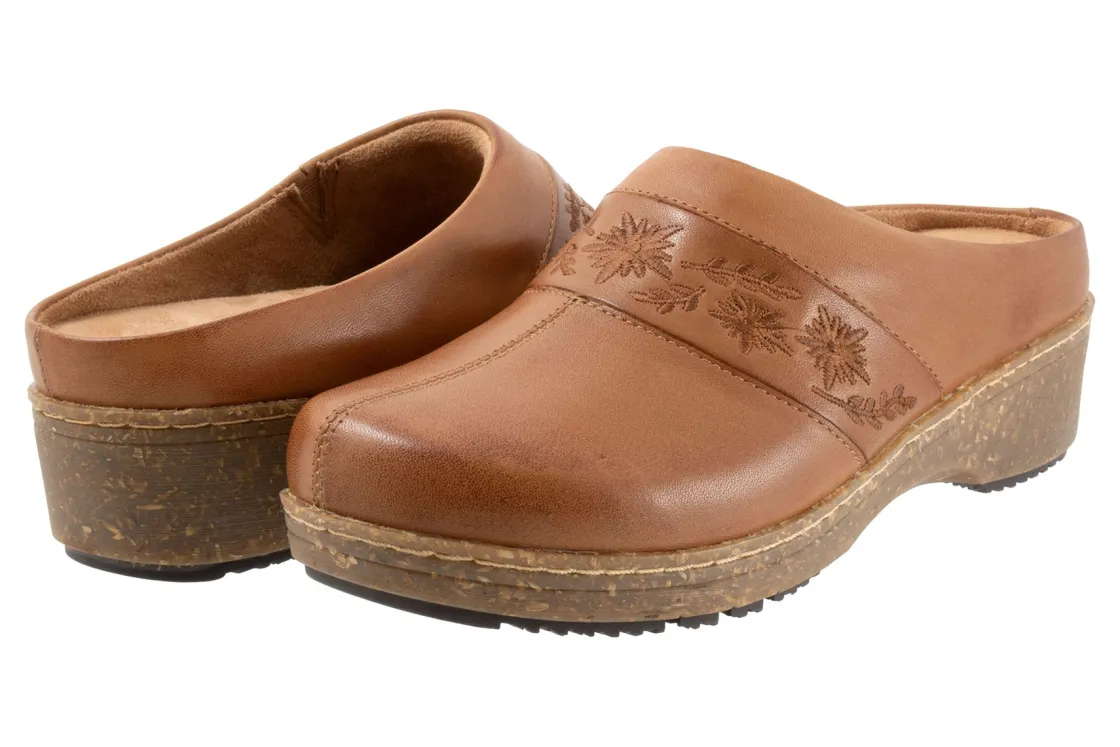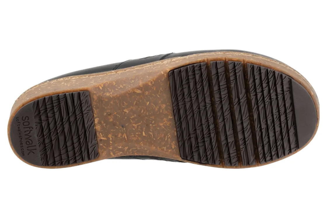 Softwalk Aurora 3.0 is an elegant and comfy clog. Prominent features include a leather upper with decorative embroidered band and a molded rubber outsole. A removable footbed, padded collar, elastic goring and 1 ¾ inch heel height will make these clogs a wardrobe staple.