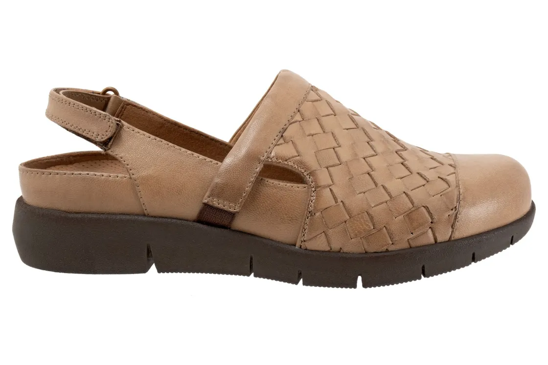 Softwalk Salina Woven II is a detailed slingback shoe. Prominent features include a woven leather upper, removable cushioned footbed and rubberized outsole. An adjustable back strap, padded collar, elastic goring and 1 ¼ inch heel height outlines these stylish shoes.