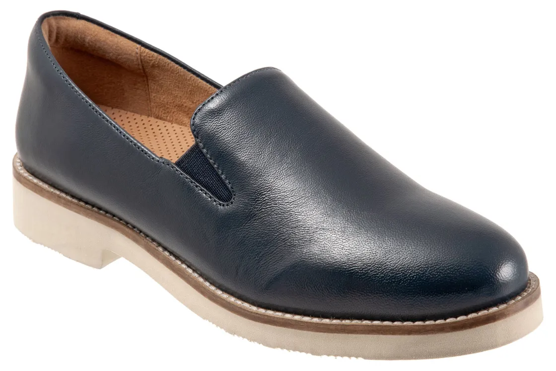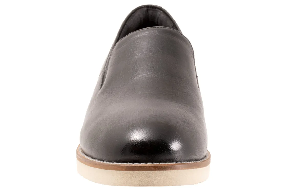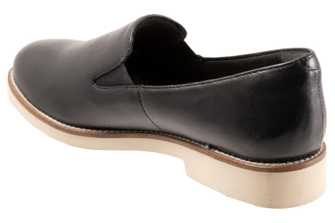 Softwalk Whistle II is a chic and comfortable slip-on flat. Prominent features include leather uppers, elastic goring, removable PU footbed and EVA outsole. A cushioned insole, round-toe silhouette and 1-inch heel height will make these flats a new favorite.