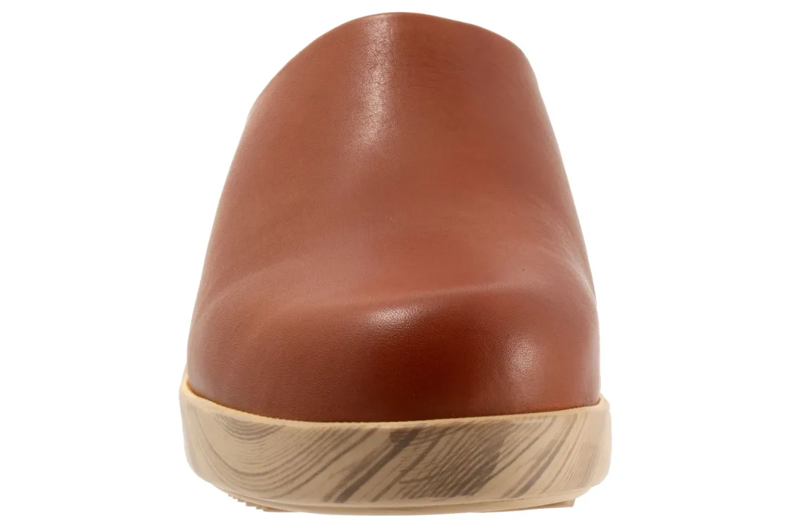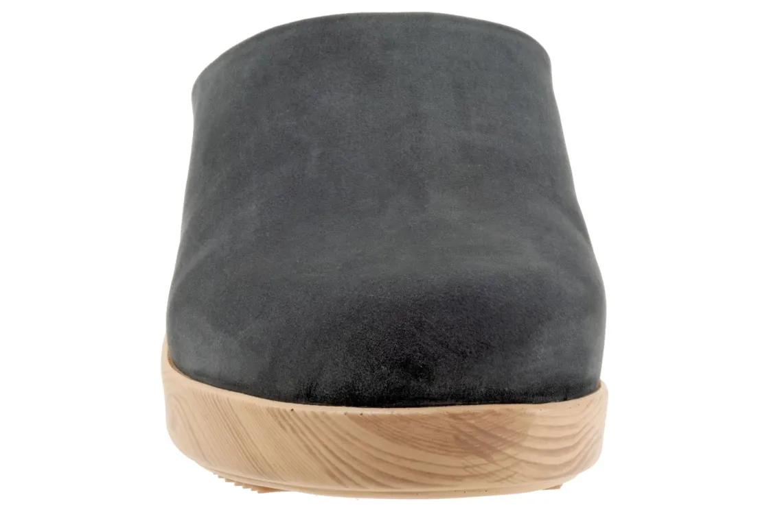 The Felida mule has a sole with the look of a wooden clog but is actually a lightweight polyurethane sole with rubber insert on the outsole for sure footing. The Felida features an inner elastic goring for a comfortable and flexible fit. The cushioned footbed is lined in soft suede leather and has arch support.