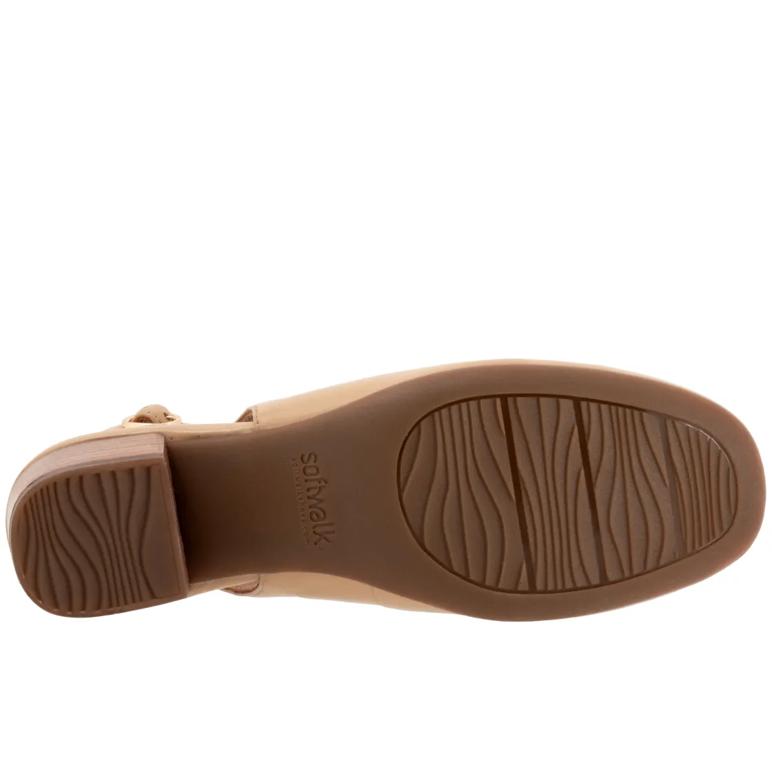 Largo is a casual sling pump with a comfortable-height stacked heel. The rubberized sole is flexible and the footbed is lined in leather.