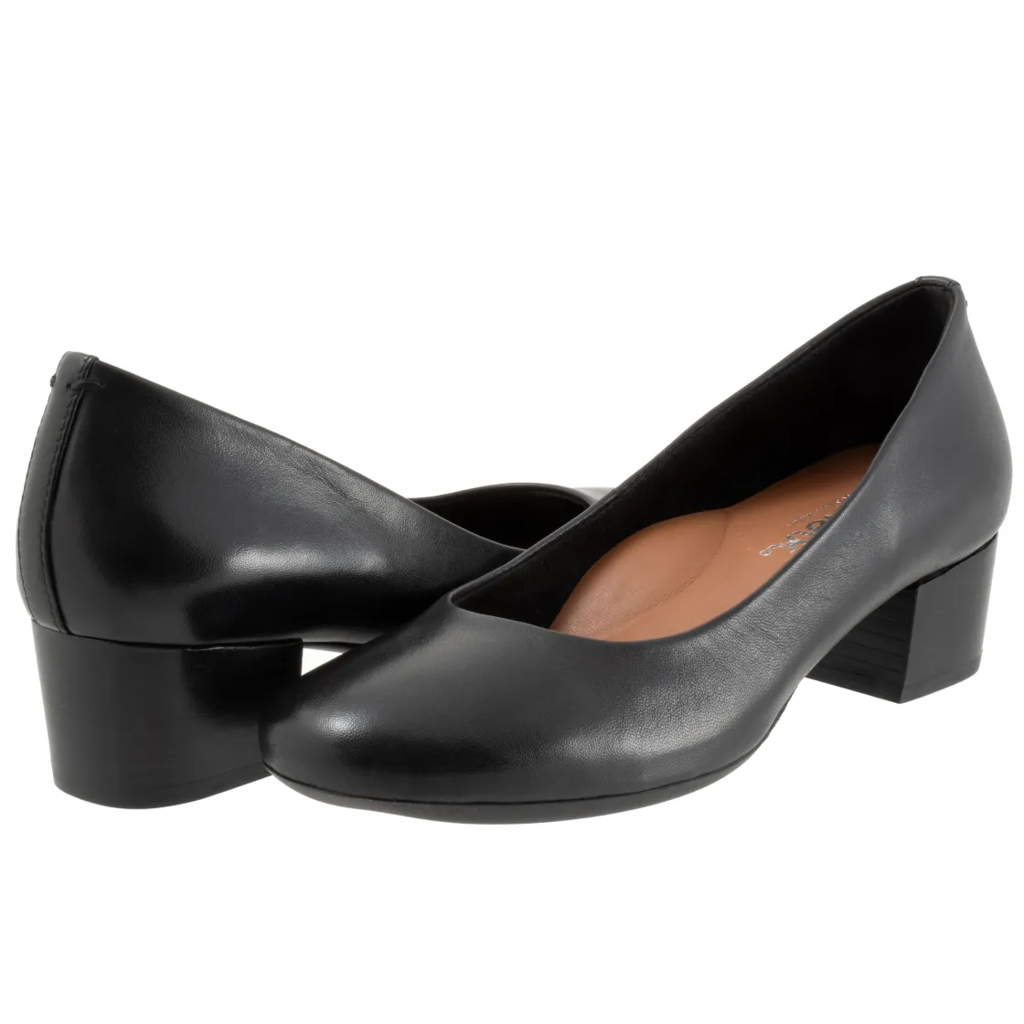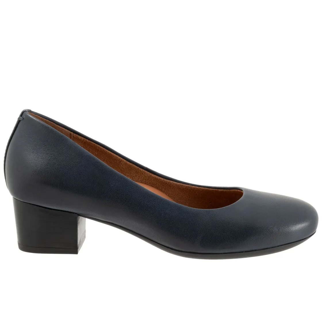 Softwalk Lynn is a casual pump with a comfortable-height stacked heel. The rubberized sole is flexible and the cushioned footbed is lined in leather, has arch support and is removable.