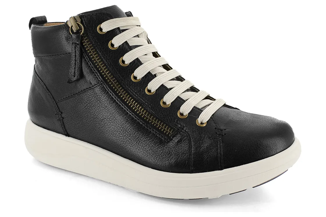 Strive Kensington is a trendy high top sneaker. These versatile shoes have leather uppers, side zipper, cushioned EVA footbed and durable rubber outsole. A textile lining, lace-up vamp and back pull tab helps these sneakers stand out.
