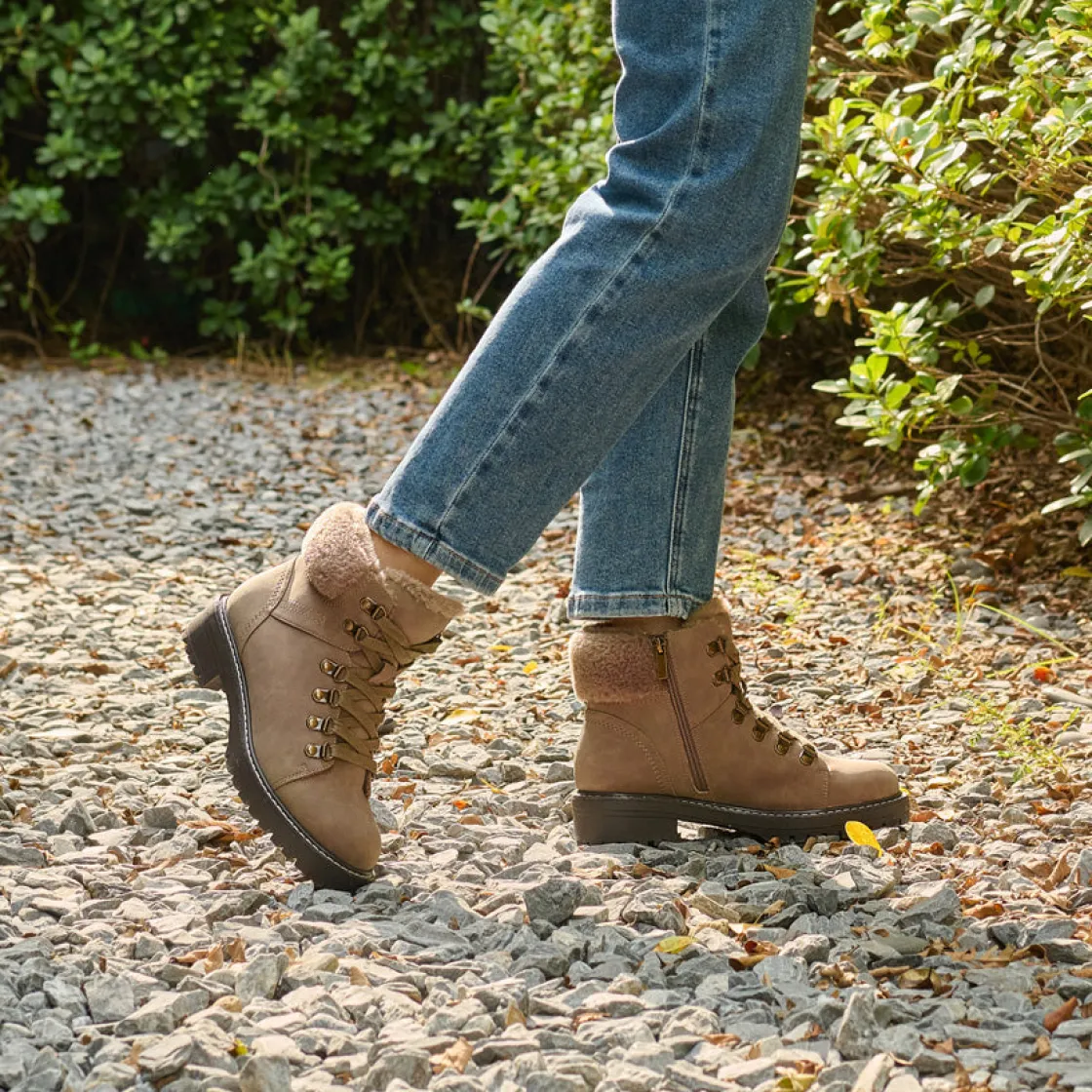 WATER-RESISTANT UPPERS: Our women’s lace up boots are crafted with a water-resistant synthetic upper with textile lining to help combat the elements whether rain or shine.