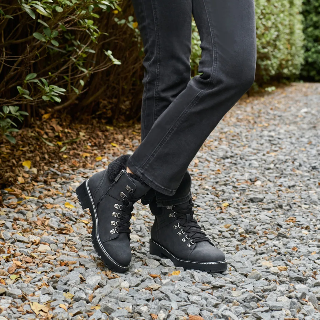 WATER-RESISTANT UPPERS: Our women’s lace up boots are crafted with a water-resistant synthetic upper with textile lining to help combat the elements whether rain or shine.
