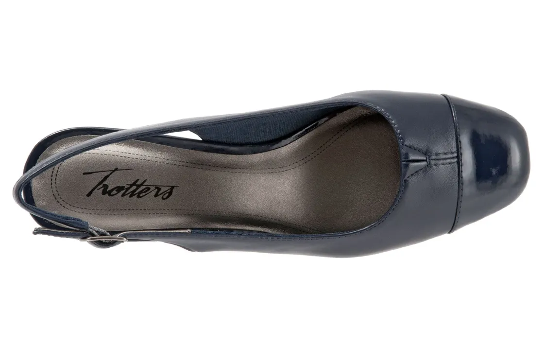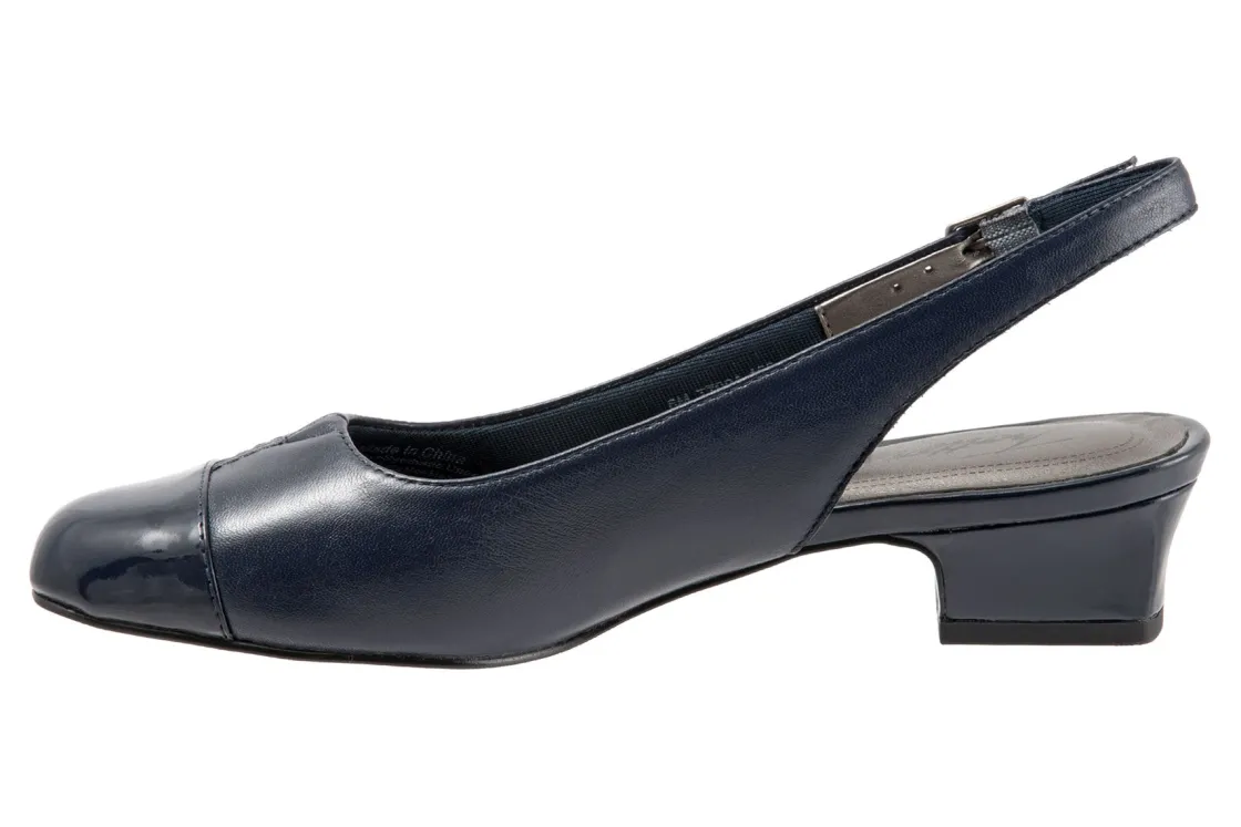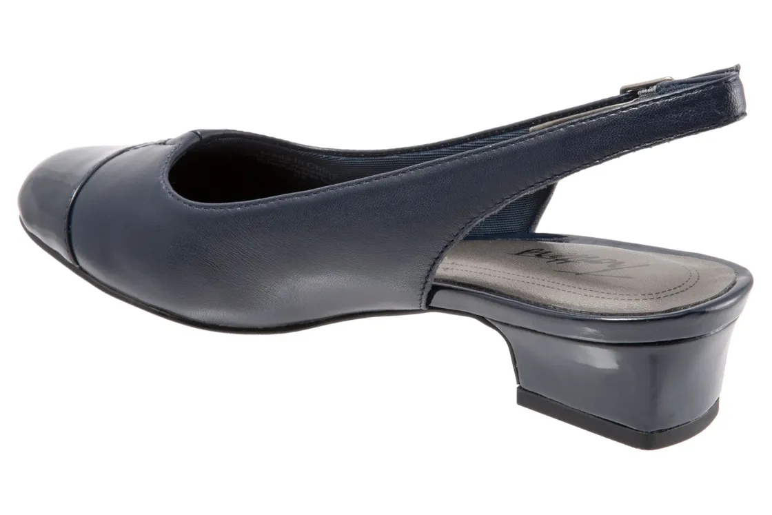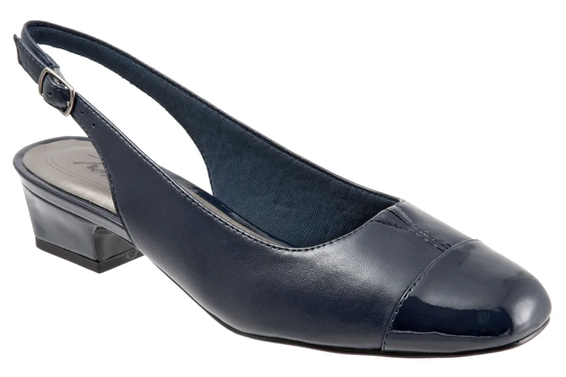 Trotters Dea has an adjustable sling strap for a great fit along with a classically styled toe tip in different materials/colors.