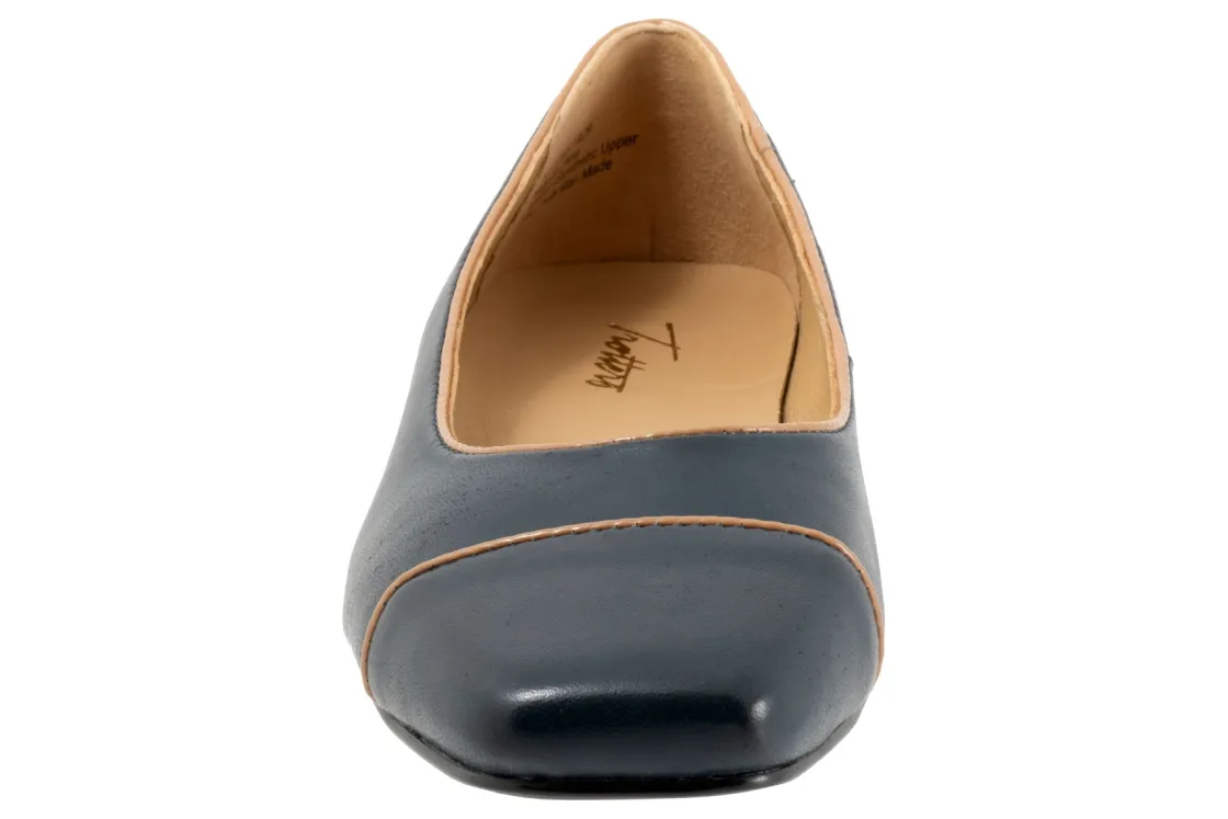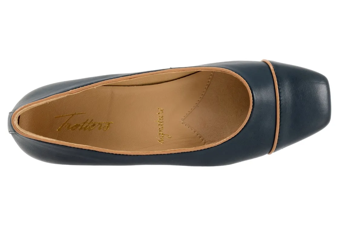 Trotters Harbor is a square-toe slip-on with leather piping details. As a part of the Signature line, the Harbor has a full leather upper lining and a special leather combination footbed with sueded leather in the fore foot for a secure fit and all day comfort.
