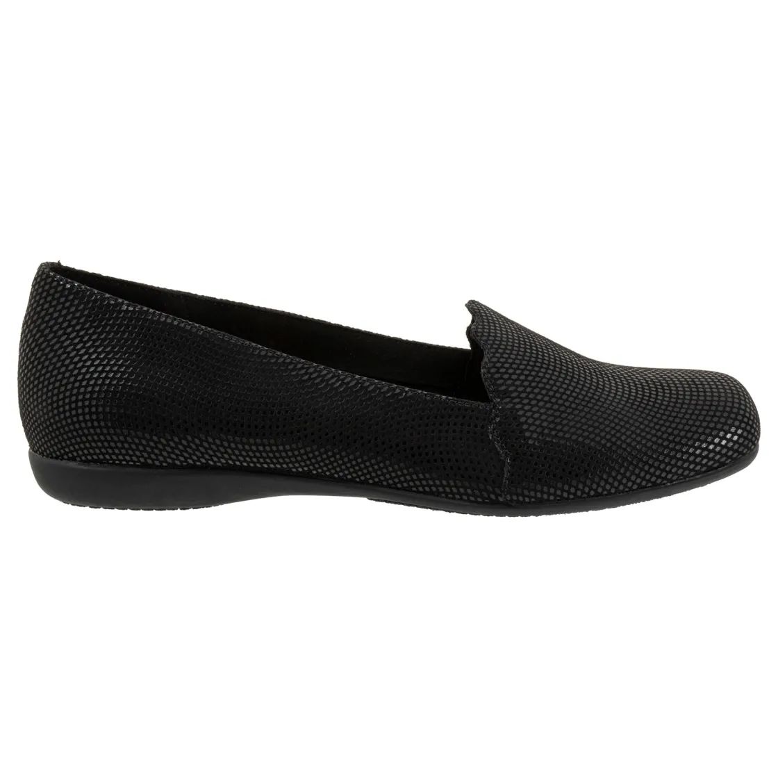 Trotters Sage is a chic and comfortable women’s loafer. Prominent features include a scalloped upper, removable cushioned footbed and molded rubber outsole. A soft lined and cushioned insole, square toe silhouette and ⅝ inch heel height outlines these impressive loafers.