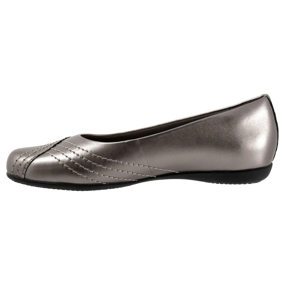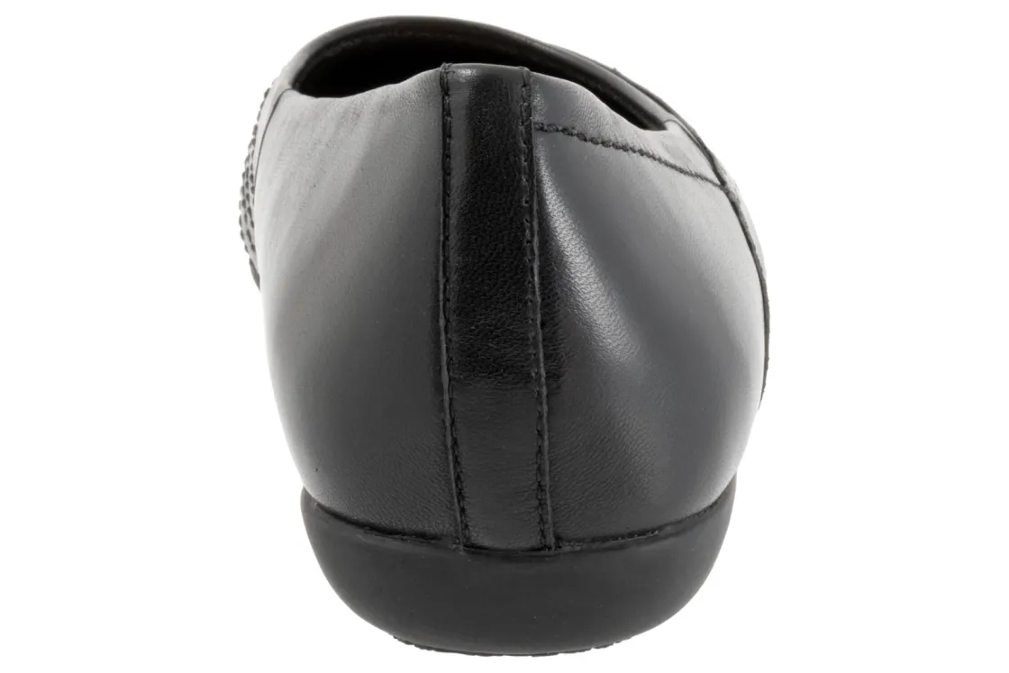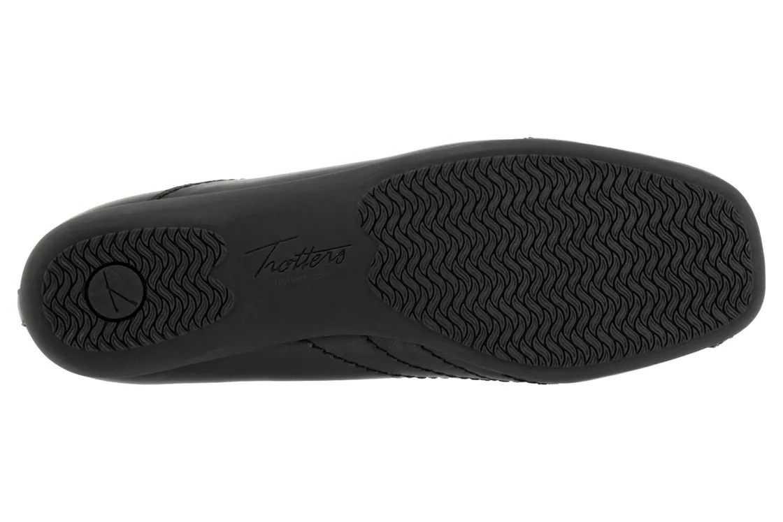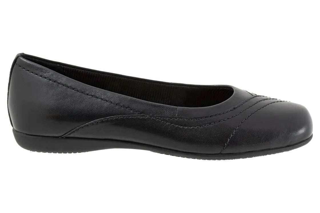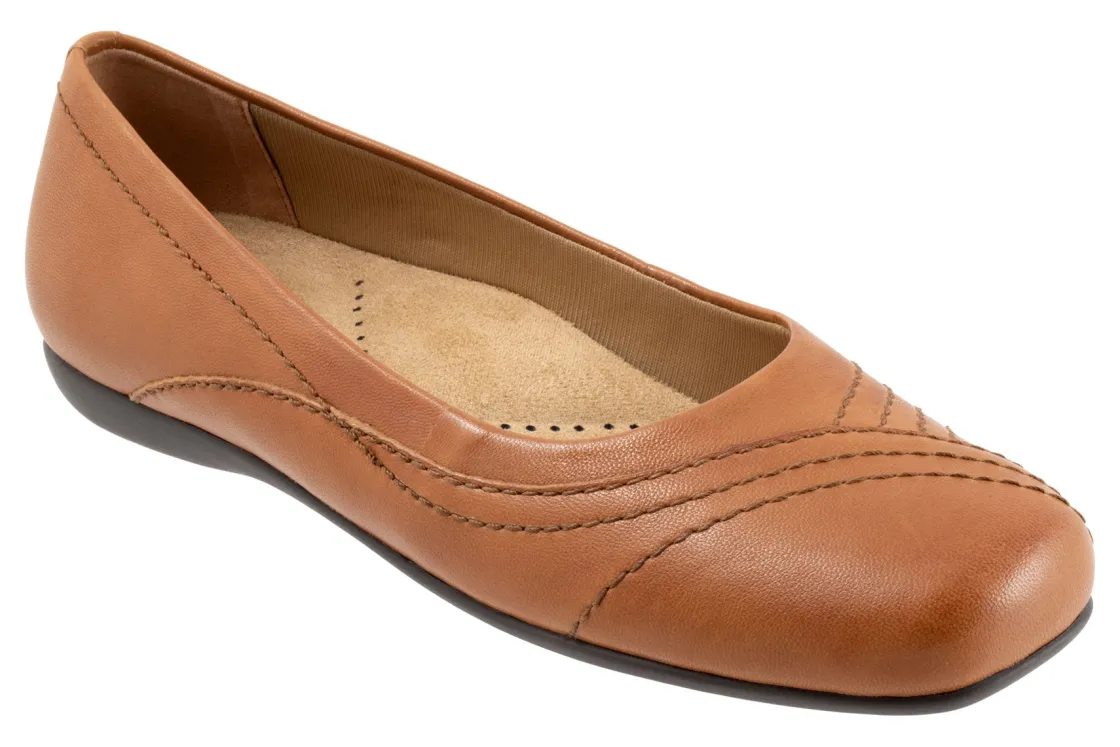 Wavy lines of stitching and overlapping leather give the Sasha flat a sense of whimsy. The removable footbed is cushioned and has arch support and the long-wearing sole is a Trotters best seller.