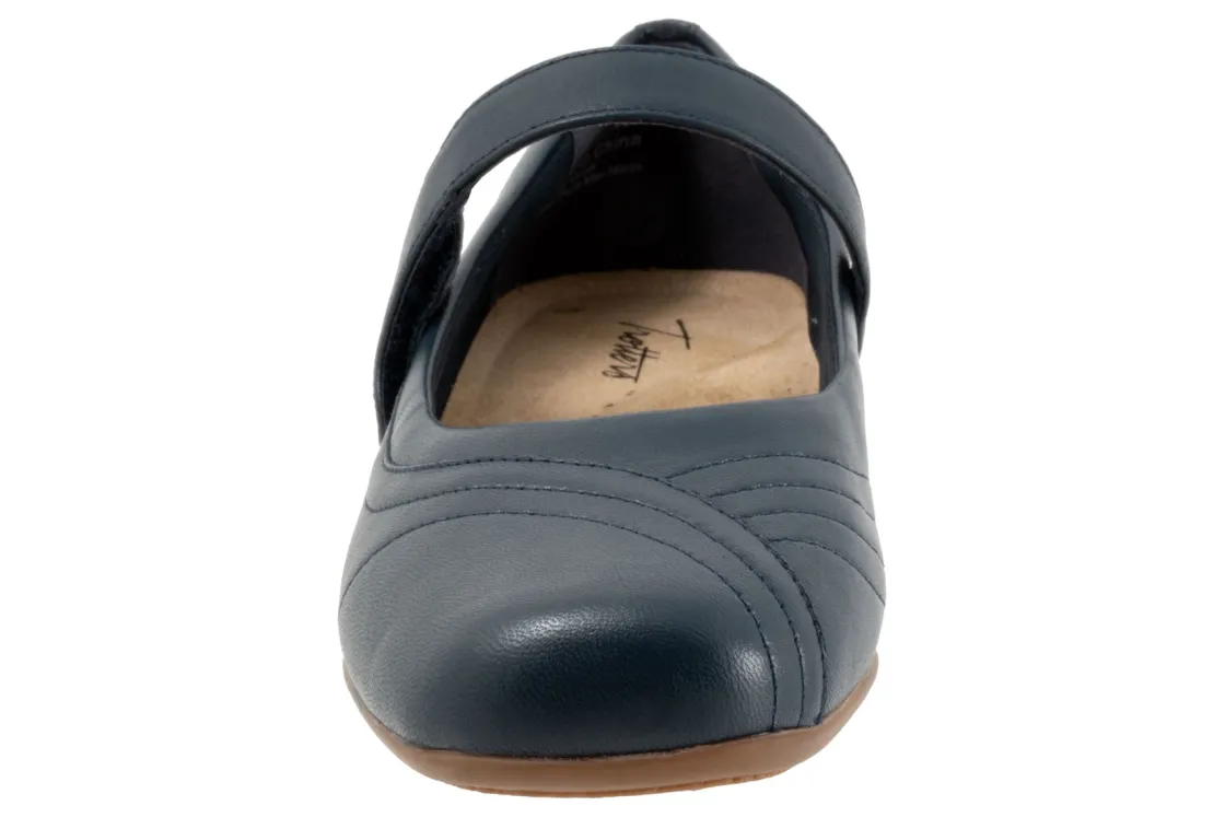 The Trotters Sherese Mary Jane has an adjustable hook and loop fastening system making it the perfect flat for walking. The removable footbed is cushioned and has arch support for all day comfort.