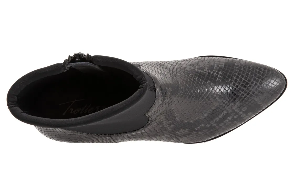 Trotters Kippy is a comfortable and upscale women’s boot. Prominent features include leather and fabric stretch uppers, zipper closure and rubberized outsole. A memory foam insole, soft velvet lining, stretch ankle shaft, 2-inch heel height and 5 ¾ inch shaft height outlines these unforgettable boots.