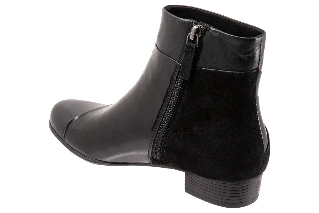 Trotters Maci is a sleek and versatile women’s boot. Prominent features include leather uppers, removable footbed, side zipper closure and rubberized outsole. A soft lining, PU insole, 1 ¼ inch stacked heel height and 5-inch shaft height elevates these cute and durable boots.