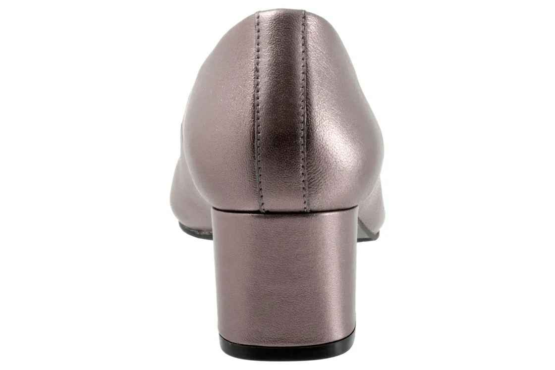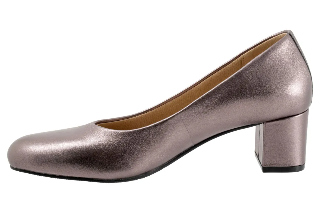 The Trotters Daria is a classic block heel pump that has a cushioned footbed with arch support.