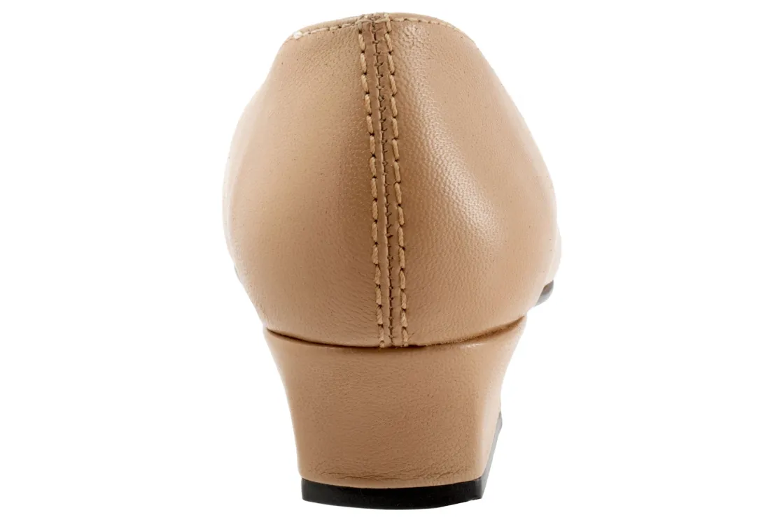 Trotters Doris is a classic and comfortable pump for any occasion. These chic heels have leather uppers, a cushioned PU footbed and synthetic rubber outsole. A tricot fabric upper lining, V-gore center vamp and a 1 ¼ inch wrapped heel height elevates these timeless pumps.