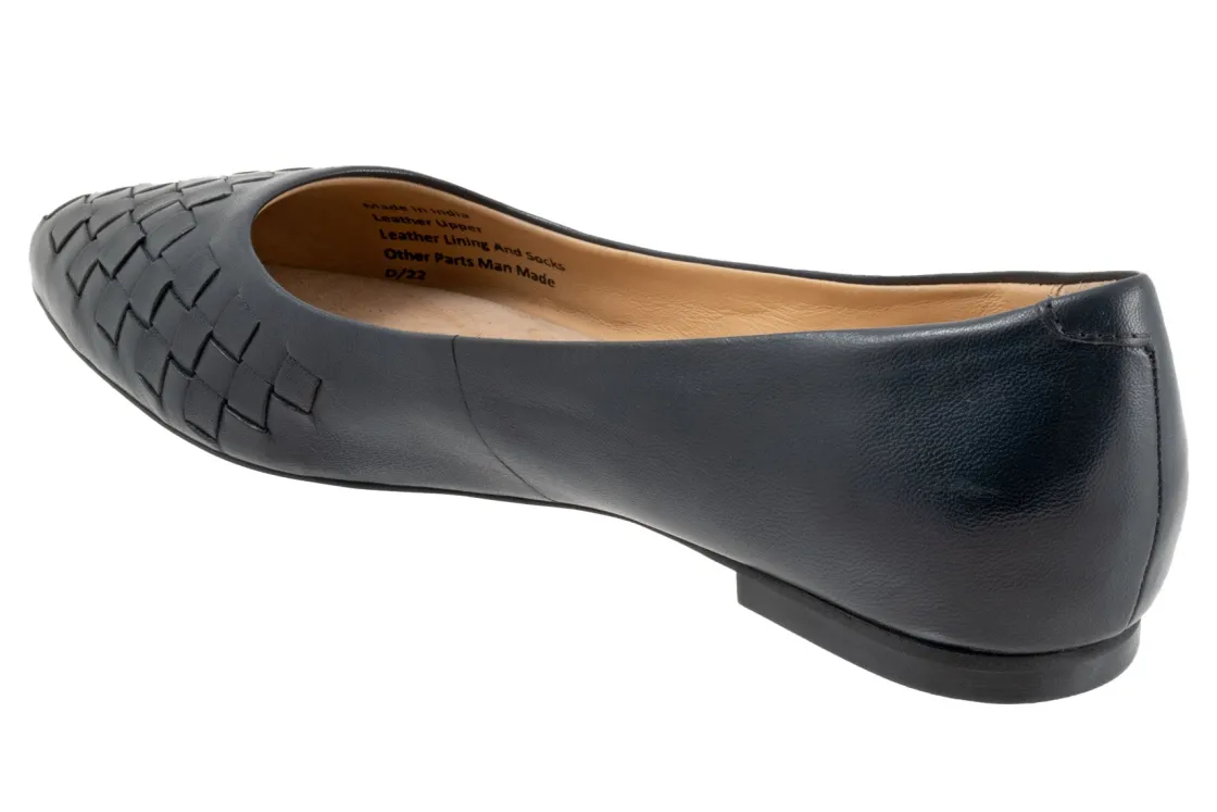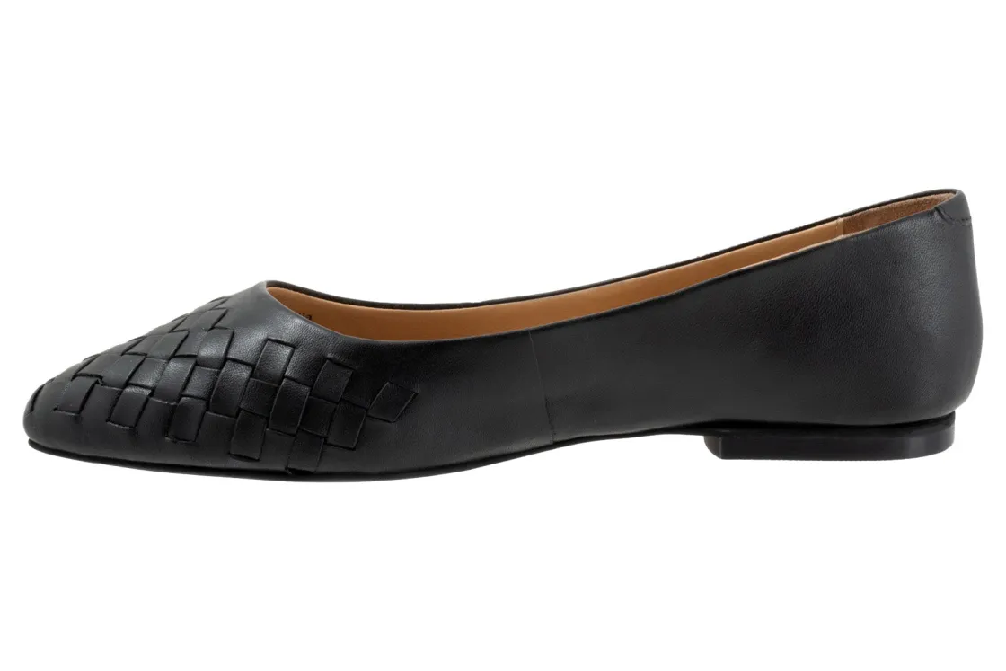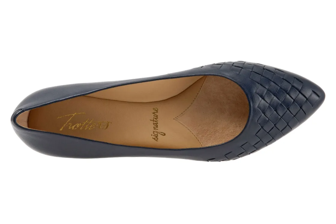 Trotters Estee Woven are comfy and hand-woven flat shoes. Prominent features include woven leather uppers, cushioned footbed and synthetic leather outsole. A leather lining, pointed toe and ⅜ inch heel height will make these women’s flats a new favorite around the office.
