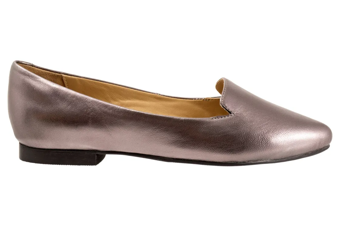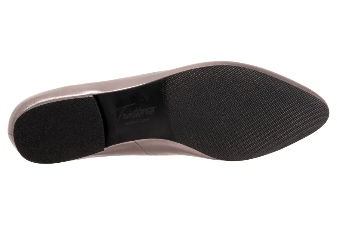 Trotters Harlowe is a little pointed slip-on with just a touch of interest along the top line. Playful colors and classics make this the go-to flat for any season. A nicely padded footbed makes for a cozy comfortable feeling.