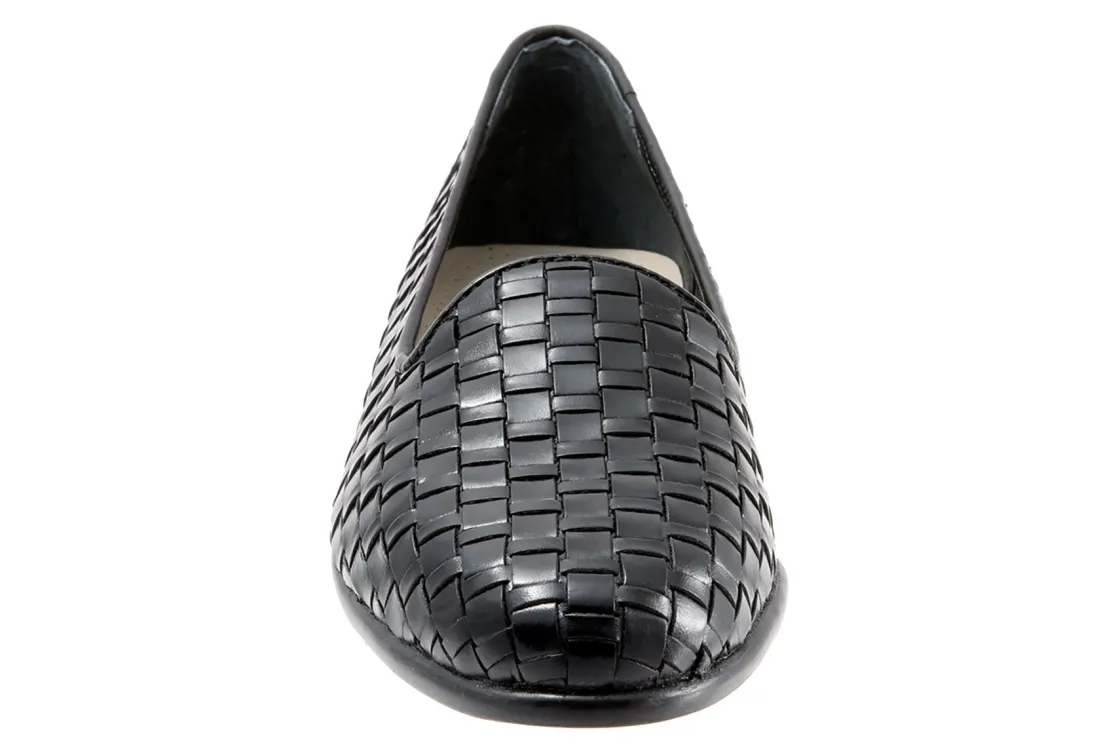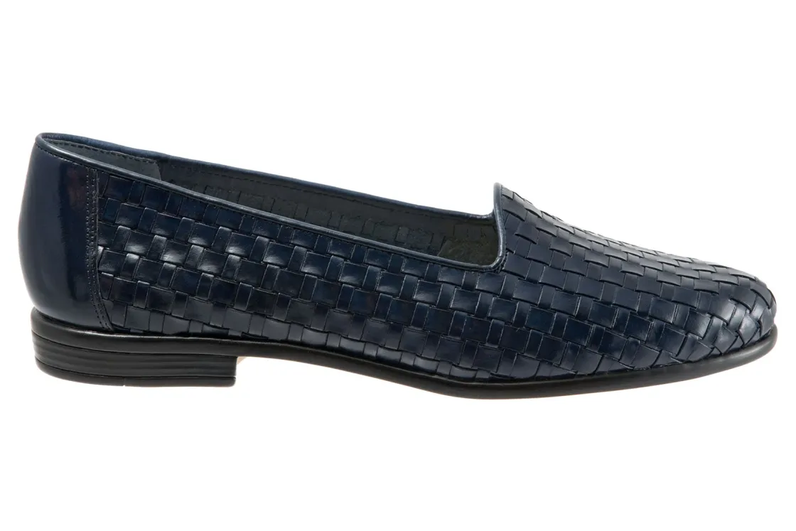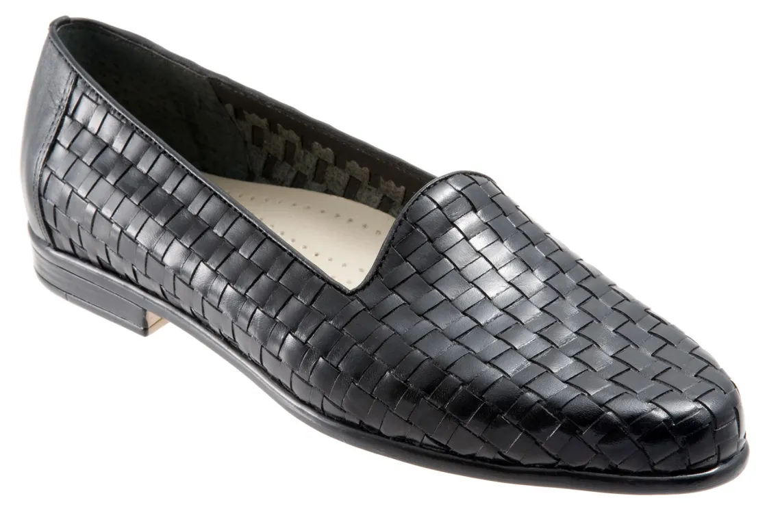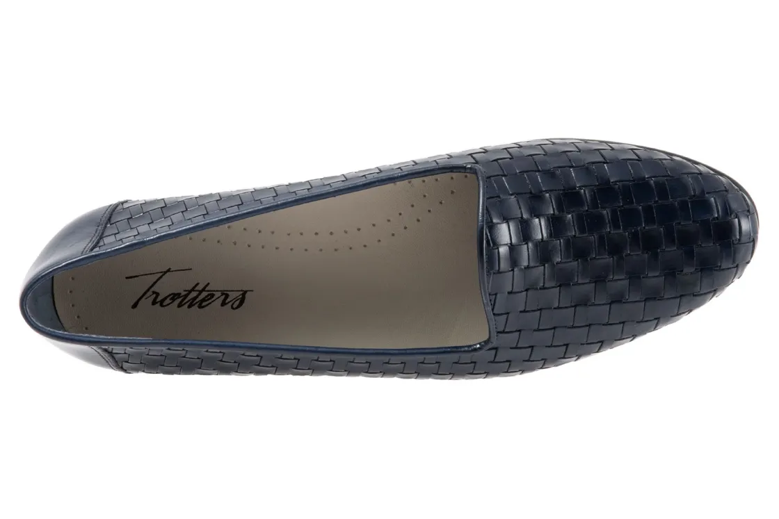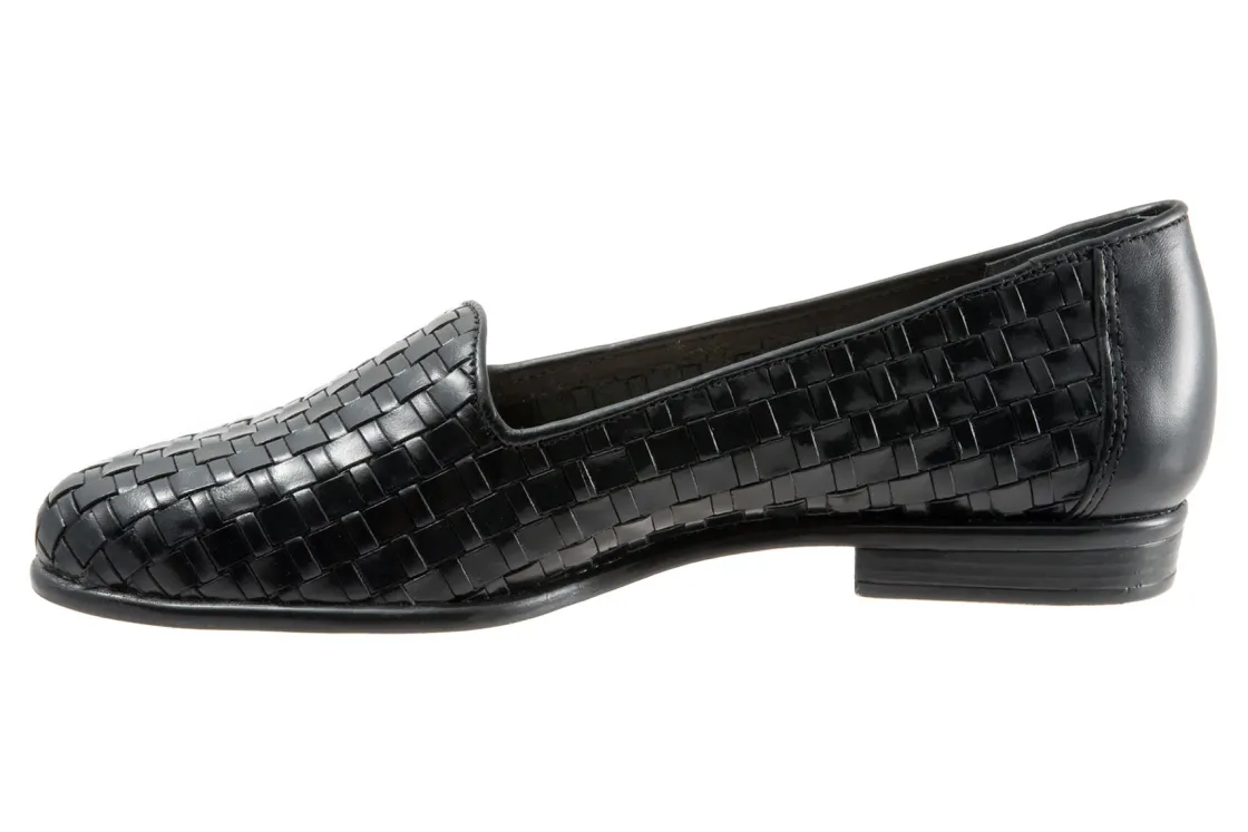 Trotters Liz is a sleek, woven loafer for special occasions. These trendy loafers have basket weave leather uppers, cushioned PU footbed and rubberized outsole. A soft cloth vamp lining, rounded toe and ⅝ inch heel height will make these chic dress shoes a new favorite.