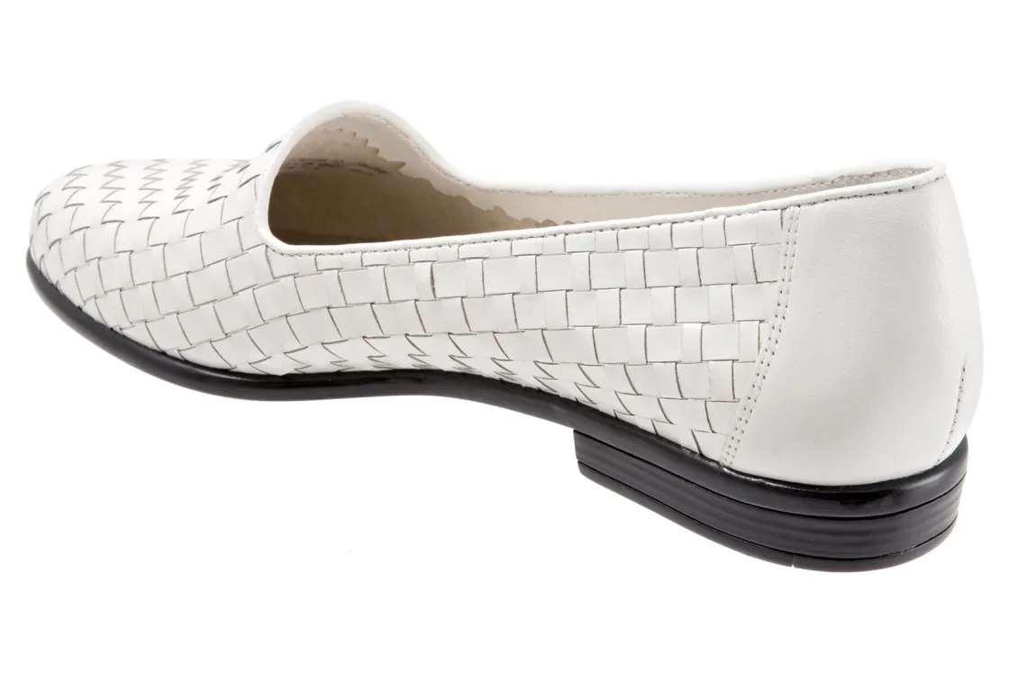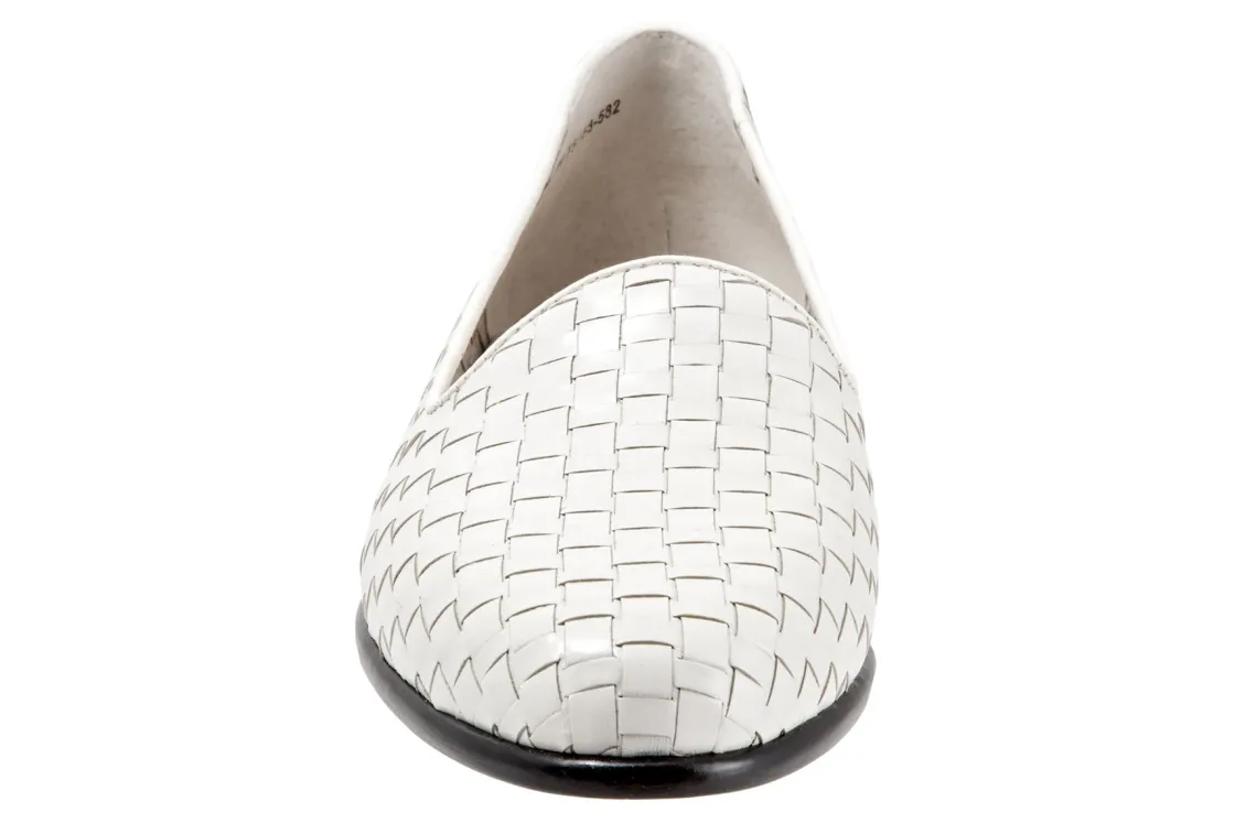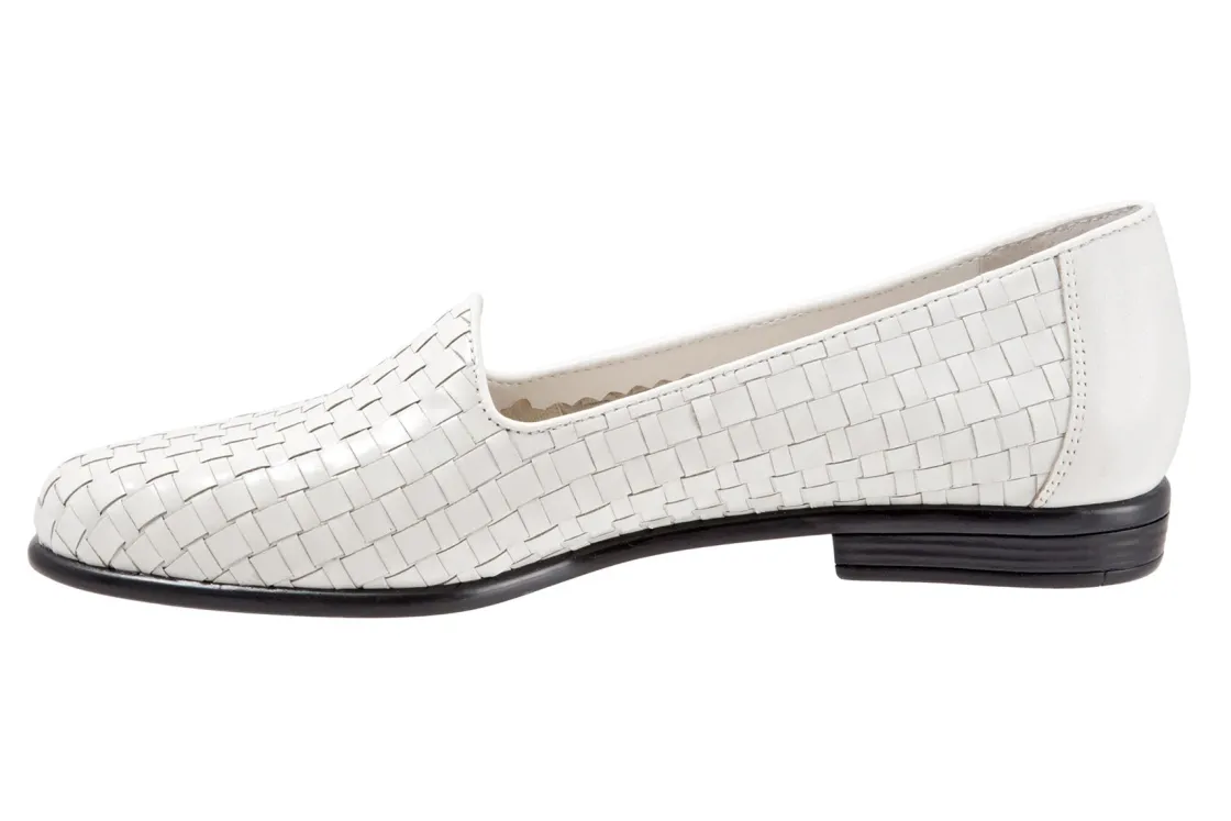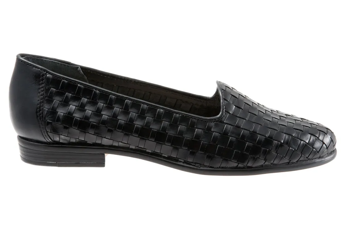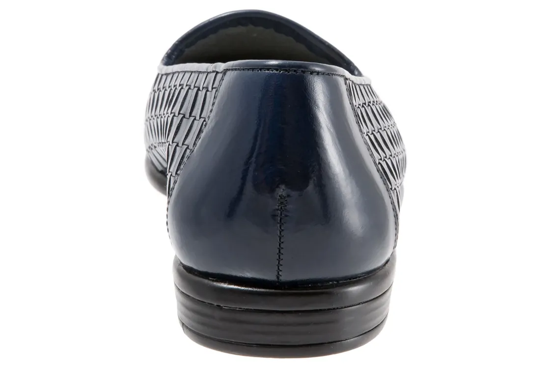 Trotters Liz is a sleek, woven loafer for special occasions. These trendy loafers have basket weave leather uppers, cushioned PU footbed and rubberized outsole. A soft cloth vamp lining, rounded toe and ⅝ inch heel height will make these chic dress shoes a new favorite.