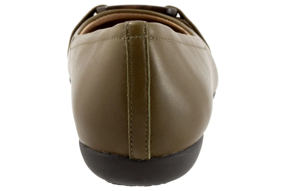 The ballerina flat, Sizzle, is dressed up with classy metal ornament buckle detail covering the toe. A great everyday walking tailored flat for work or play. Suede Metallic colors have a man-made microfiber suede upper with painted metal buckle detail on the toe.