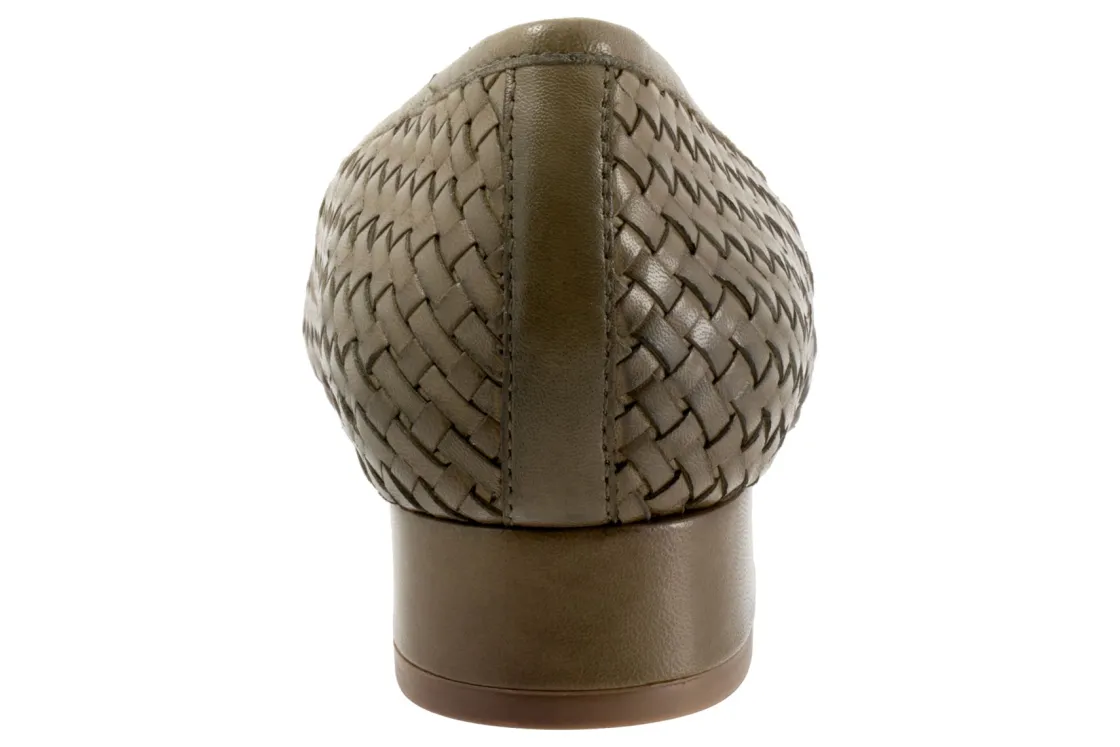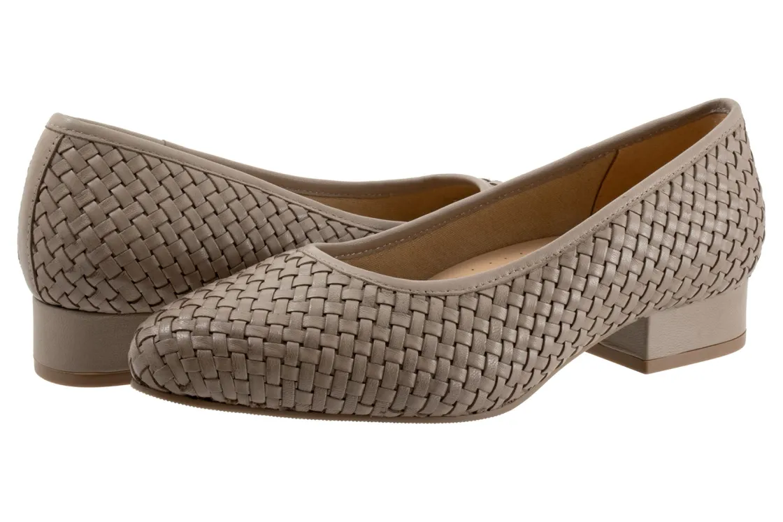 Trotters Jade are sophisticated and unique women’s pumps. These heels have woven leather uppers, plush PU footbed, soft rolled collar and rubberized outsole. A tricot fabric upper lining and a 1 ¼ inch mid-block heel outlines this fashionable pump.