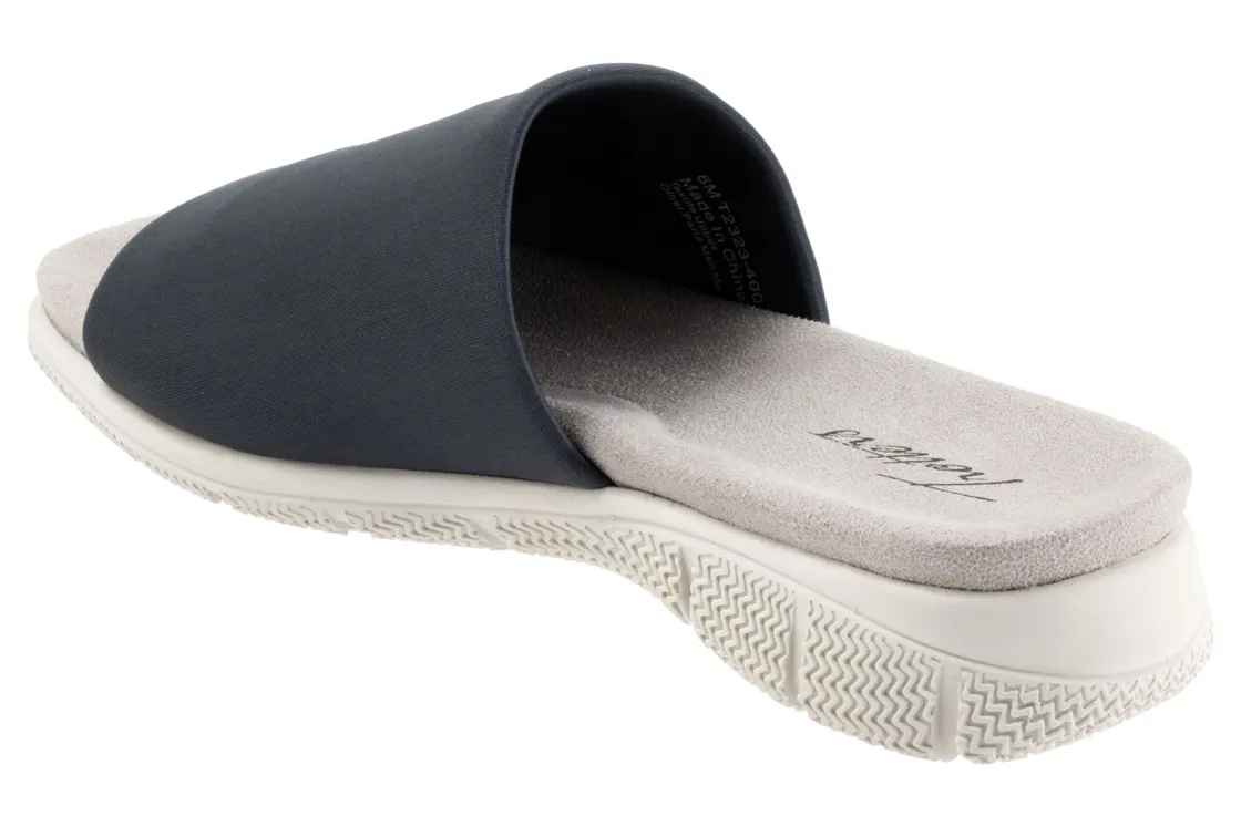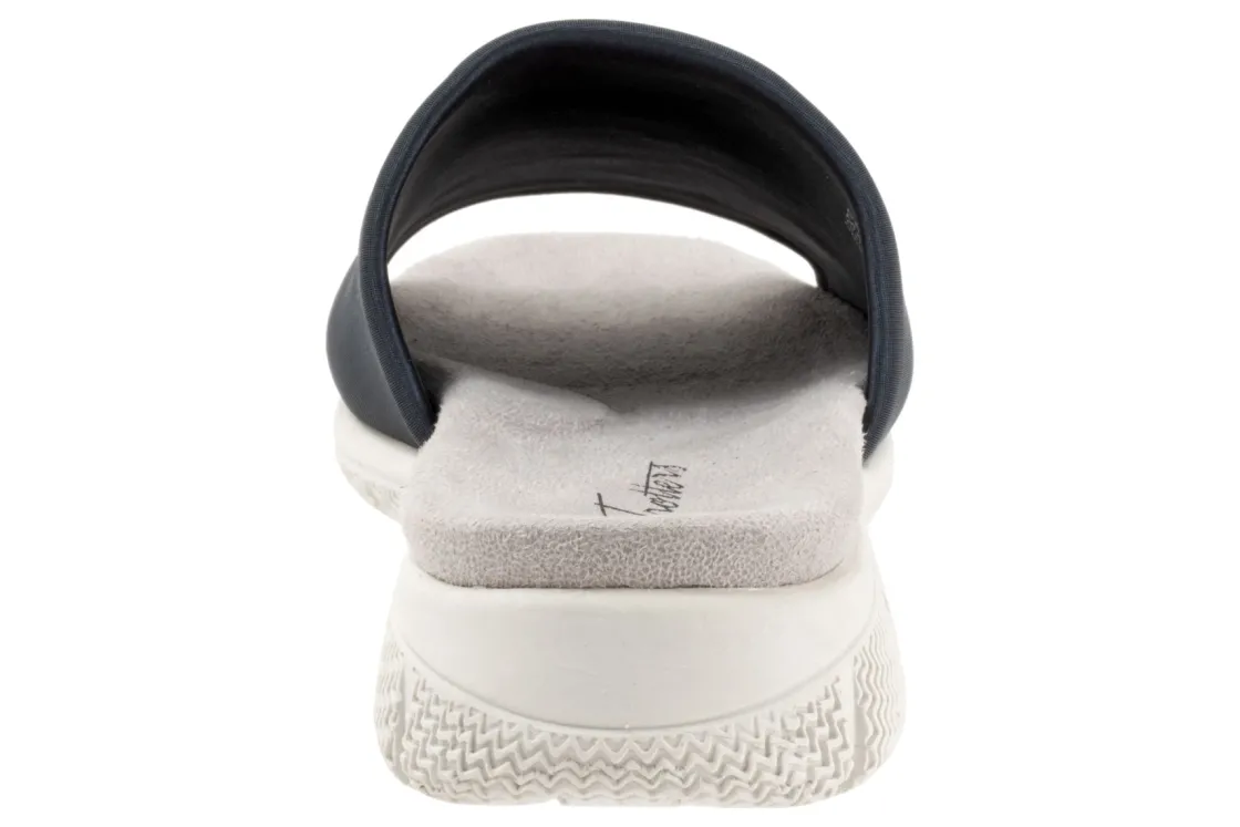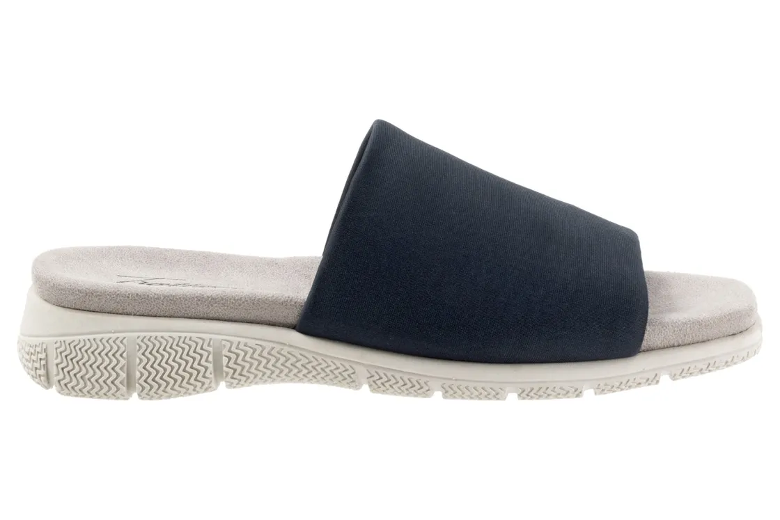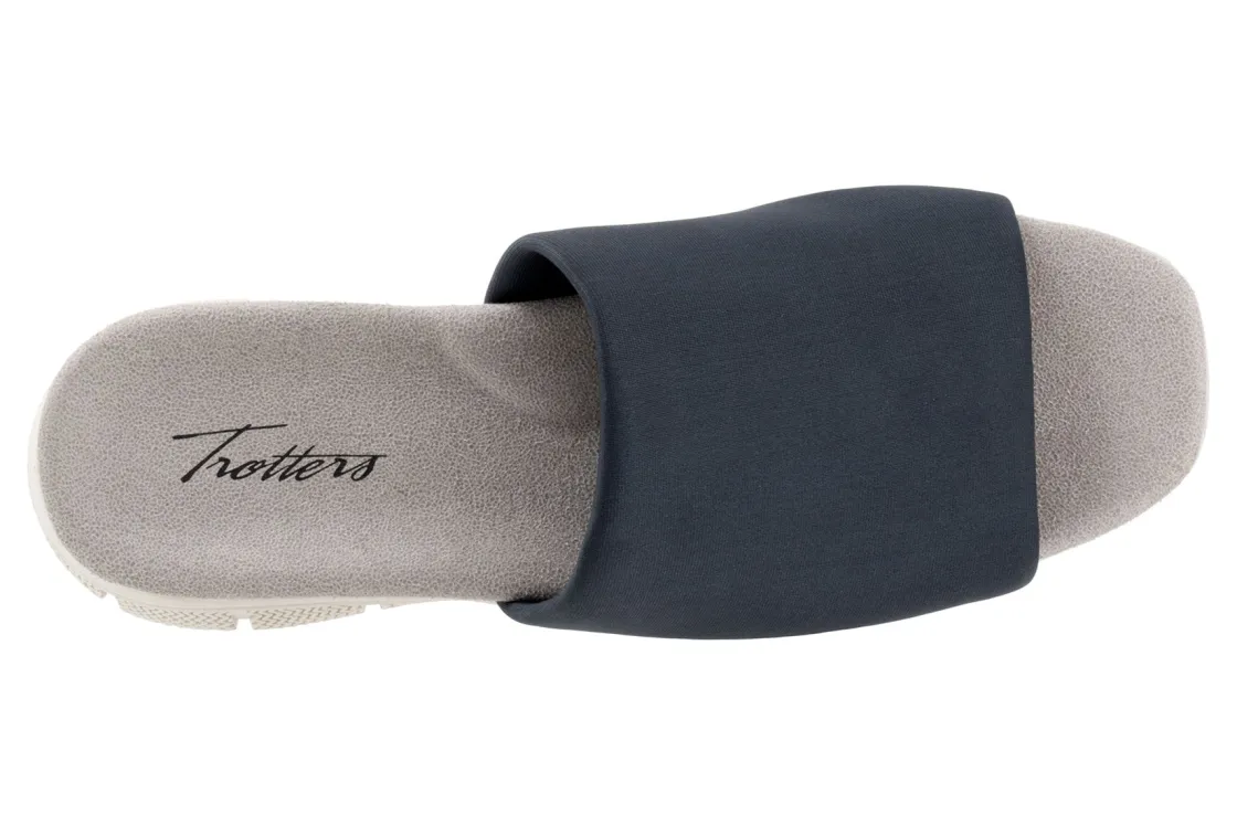Trotters Toni is a sporty slide sandal built for comfort. These versatile slides have fabric stretch uppers, memory foam cushioned footbed and EVA outsole. A wide thick upper band, soft microfiber lining and 1-inch heel height will make these summertime slides a new favorite.